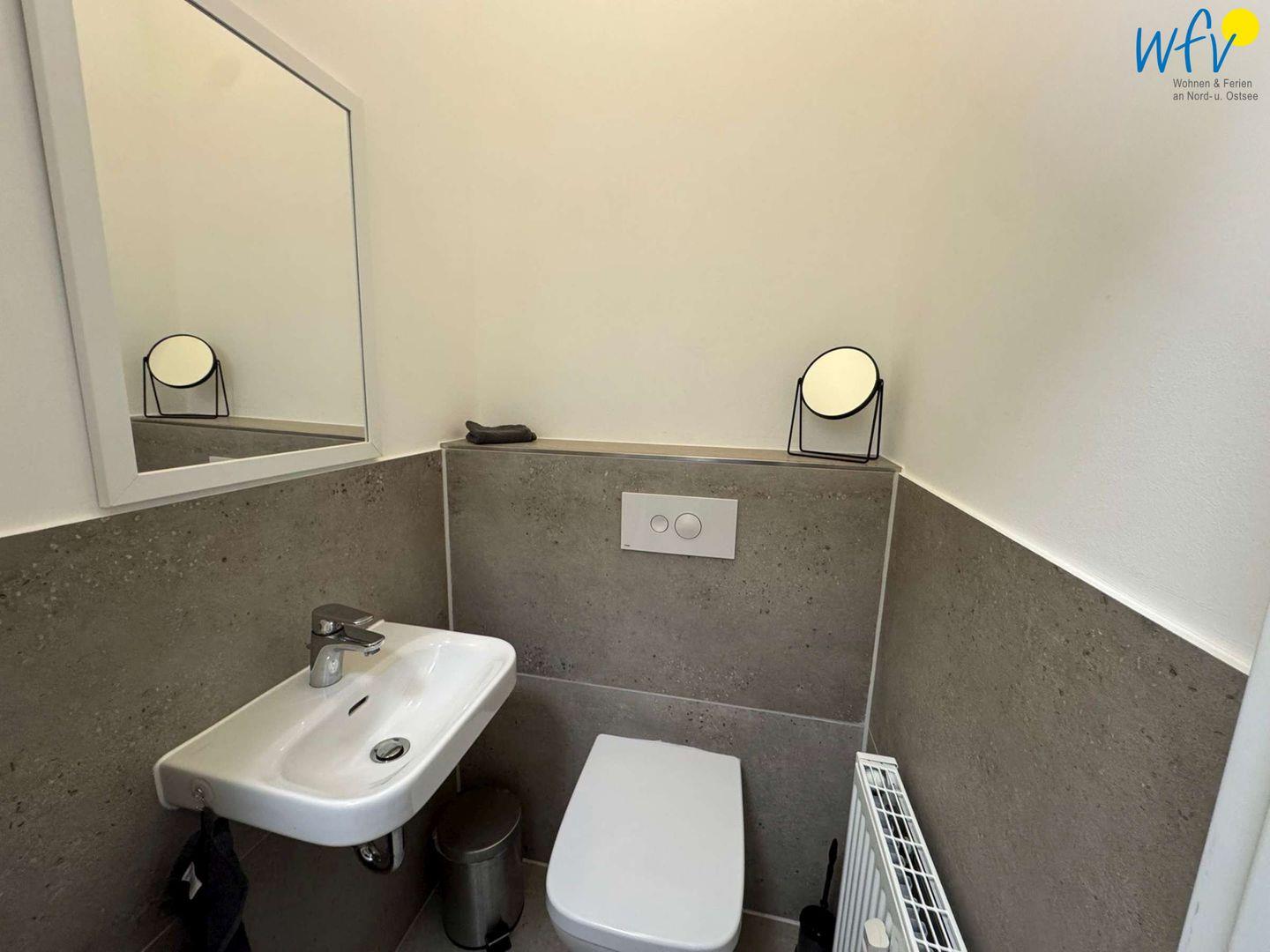 Weiterer Wohnkomfort besteht durch das moderne Badezimmer mit bodengleicher Dusche. Darüber hinaus bietet ein separates Gäste-WC angenehme Ausweichmöglichkeiten.