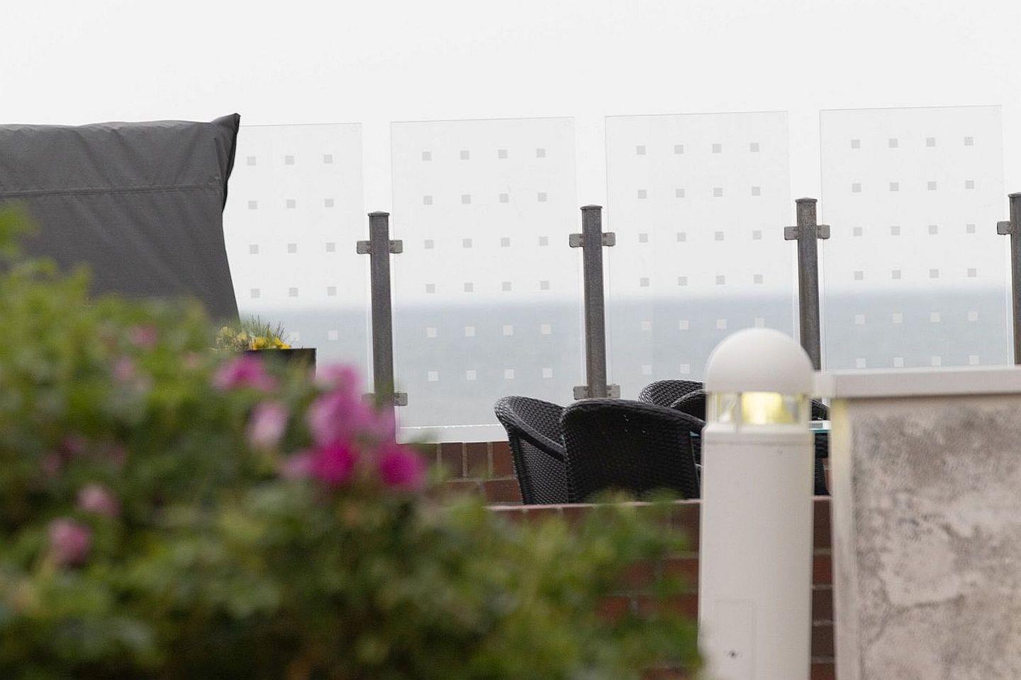 Ein Highlight ist die Terrasse mit Nordseeblick, die zu gemütlichen Stunden bei Meeresrauschen einlädt – sei es bei einer Tasse Kaffee am Morgen oder einem Glas Wein bei Sonnenuntergang.