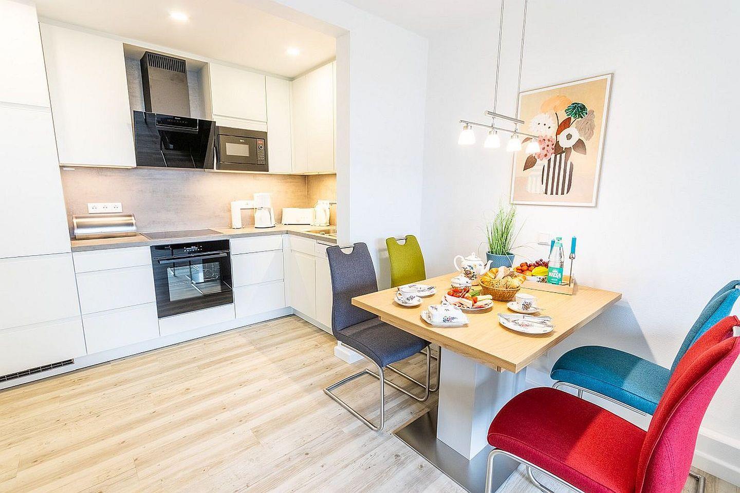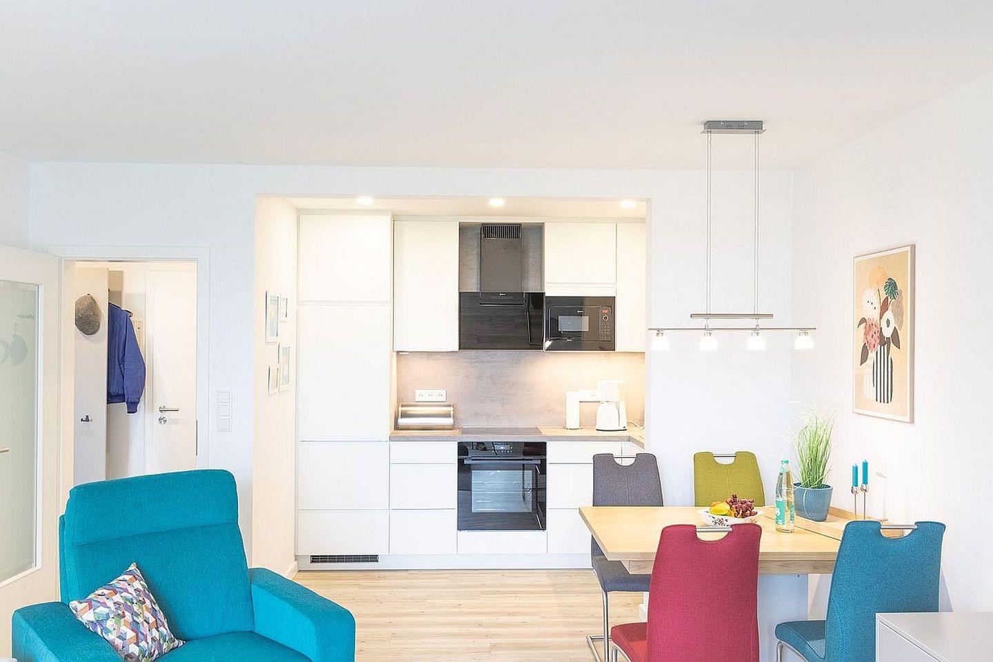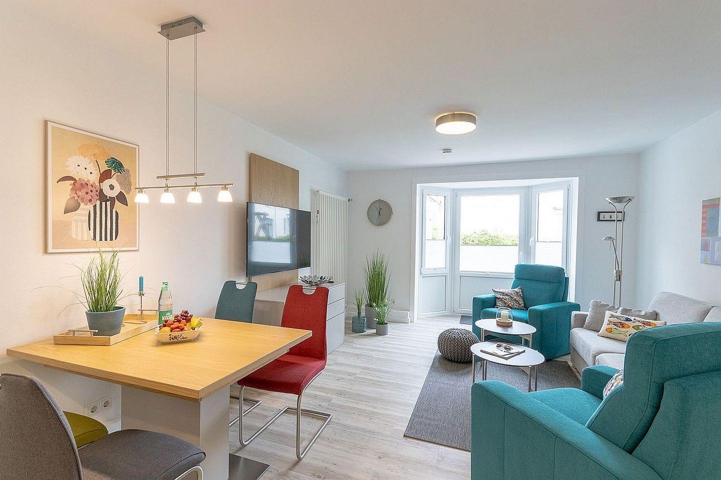 Die Wohnung liegt im Erdgeschoss und begeistert mit einer großzügigen Terrasse mit Nordseeblick, auf der ihr die frische Meeresluft genießen könnt – sei es beim Frühstück, beim Lesen oder einfach zum Entspannen.