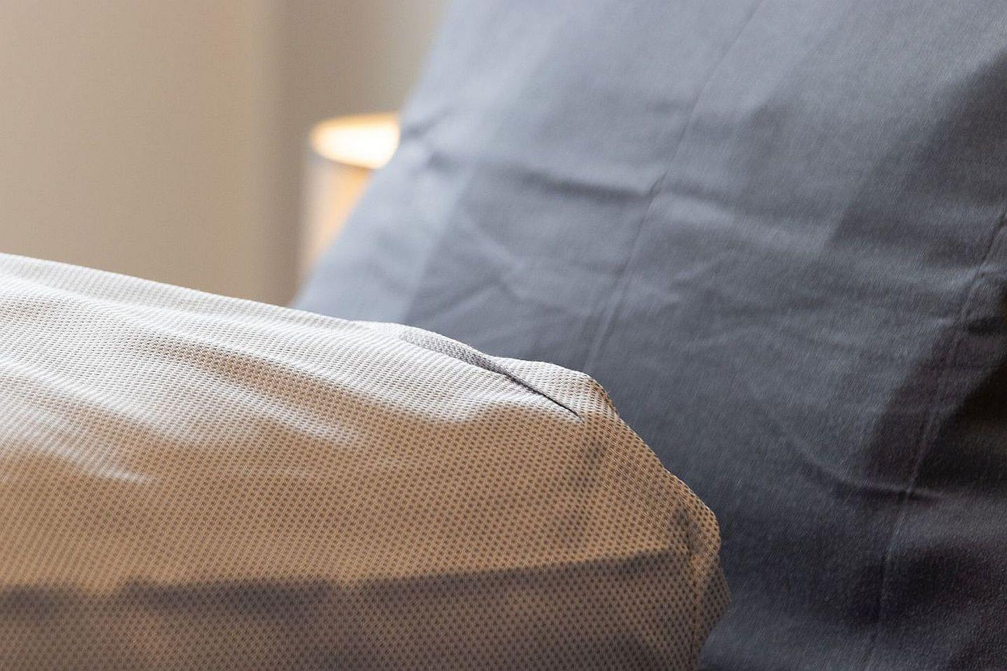Schlafzimmer: Einladend gestaltet mit einem komfortablem Ehebett, welches nach einem aktiven Tag an der Nordsee für einen erholsamen Schlaf sorgt.