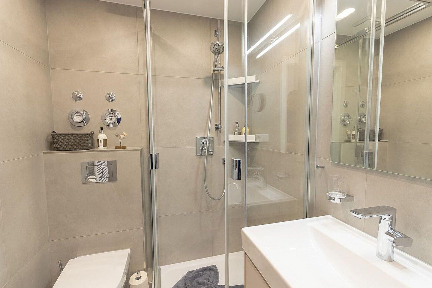Badezimmer: Modern gestaltet mit einer ebenerdigen Dusche für maximalen Komfort.