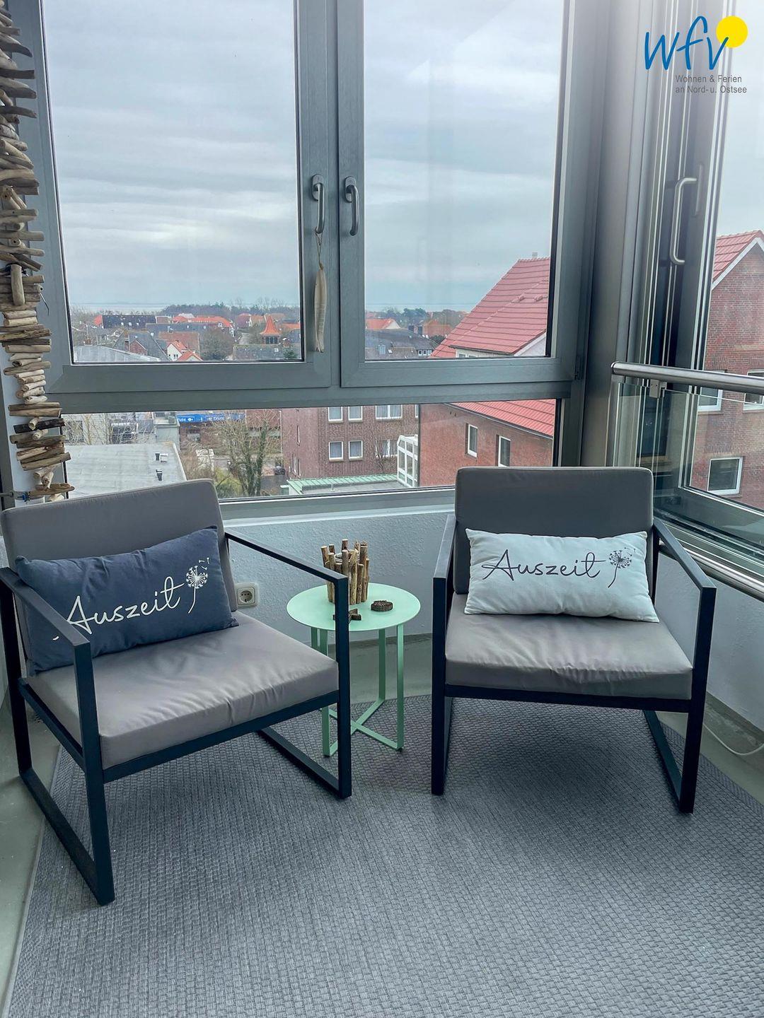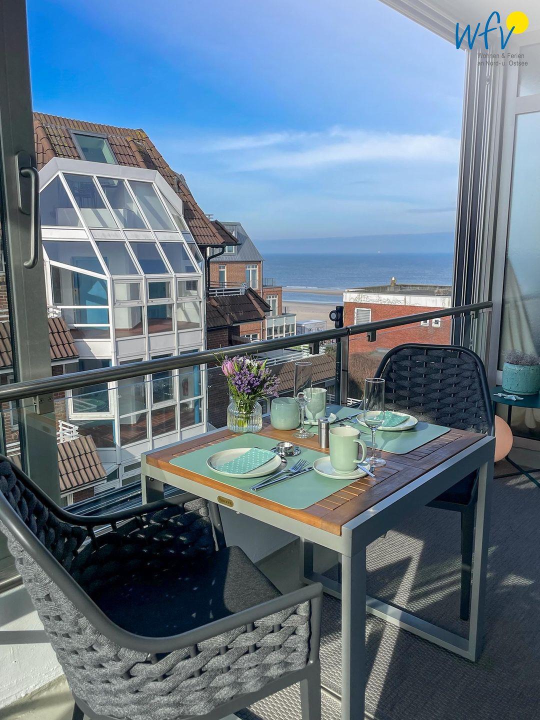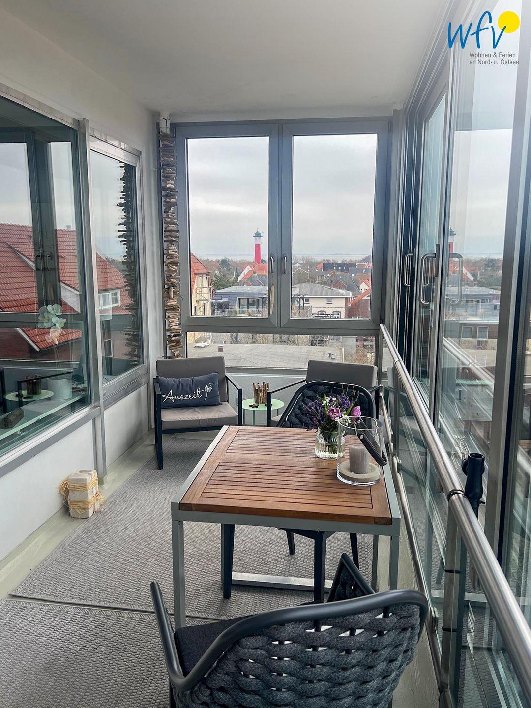 Ein Highlight dieser Ferienwohnung ist der vollverglaste Wintergarten, der zu entspannten Momenten einlädt und Ihnen einen wunderschönen Blick auf das Meer bietet (seitlich). So genießen Sie bereits beim Ferienfrühstück eine weite Aussicht auf Wellen und Strand! Bei sonnigem Wetter lässt sich der Wintergarten zu einem offenen überdachten Balkon umfunktionieren, an kühleren Tagen zu einem gemütlichen windgeschützten und geschlossenen Glashaus.