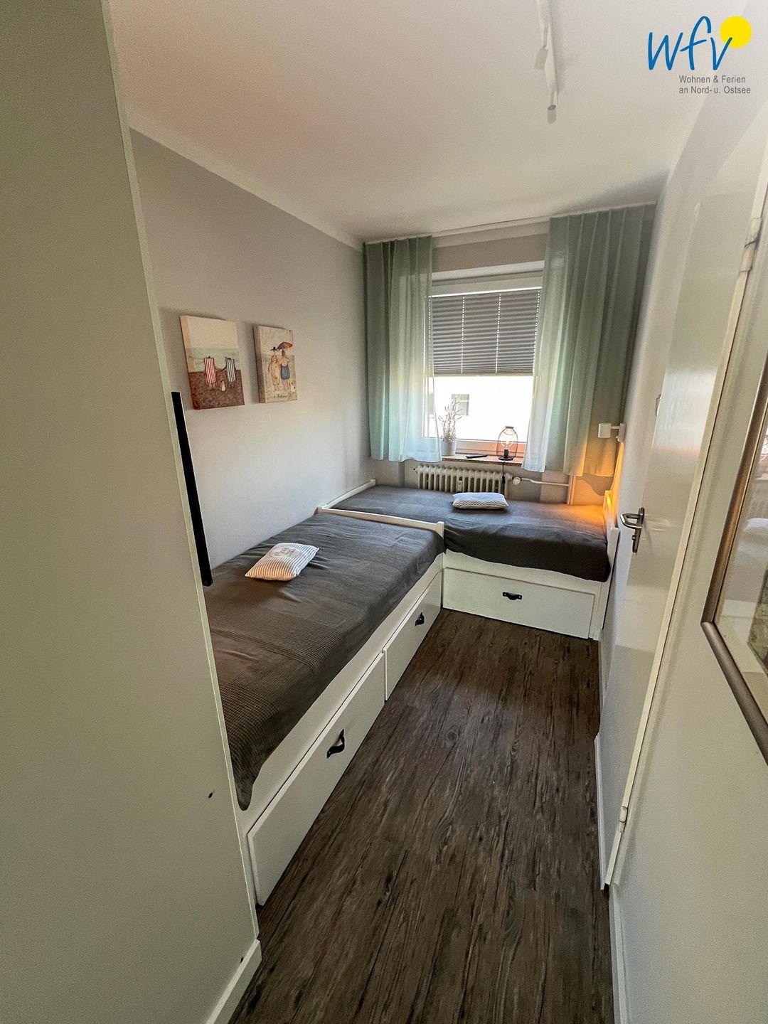 Das komfortable Schrankbett im Wohnraum (180 x 200 cm) lässt sich leicht zu einem Doppelbett ausklappen. In dem separaten Schlafzimmer befinden sich zwei komfortable Einzelbetten (90 x 190 cm bzw. 80 x 185 cm), die gerne als Ausweichmöglichkeit zum Schrankbett genutzt werden können bzw., wenn Sie getrennt schlafen möchten.