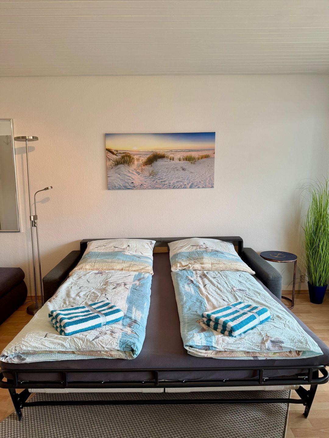 Im Wohnbereich ist ein Schlafsofa mit ordentlicher Matratze