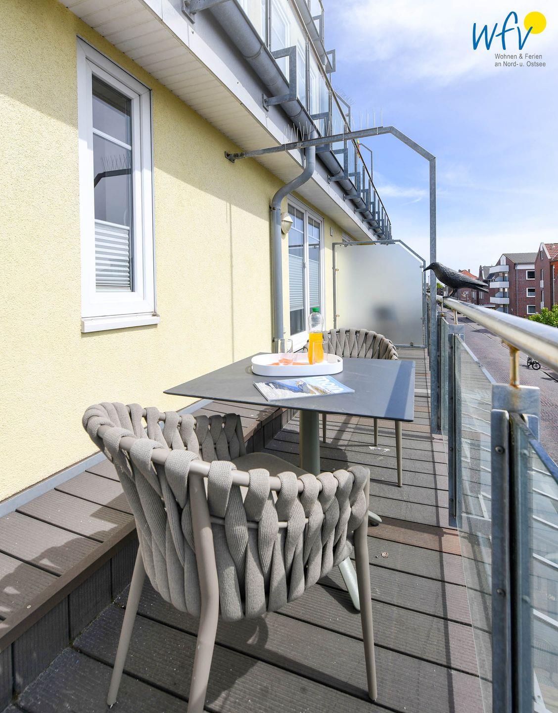Ein besonderes Bonbon der Ferienwohnung ist der überdachte Balkon, auf dem Sie die frische Seeluft genießen können. Ob Sie den Sonnenuntergang beobachten oder einfach nur die ruhige Umgebung auf sich wirken lassen, dieser Platz ist ideal für entspannte Stunden im Freien.