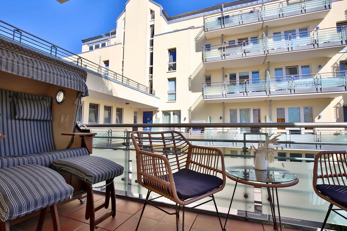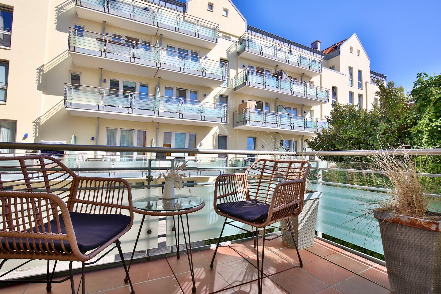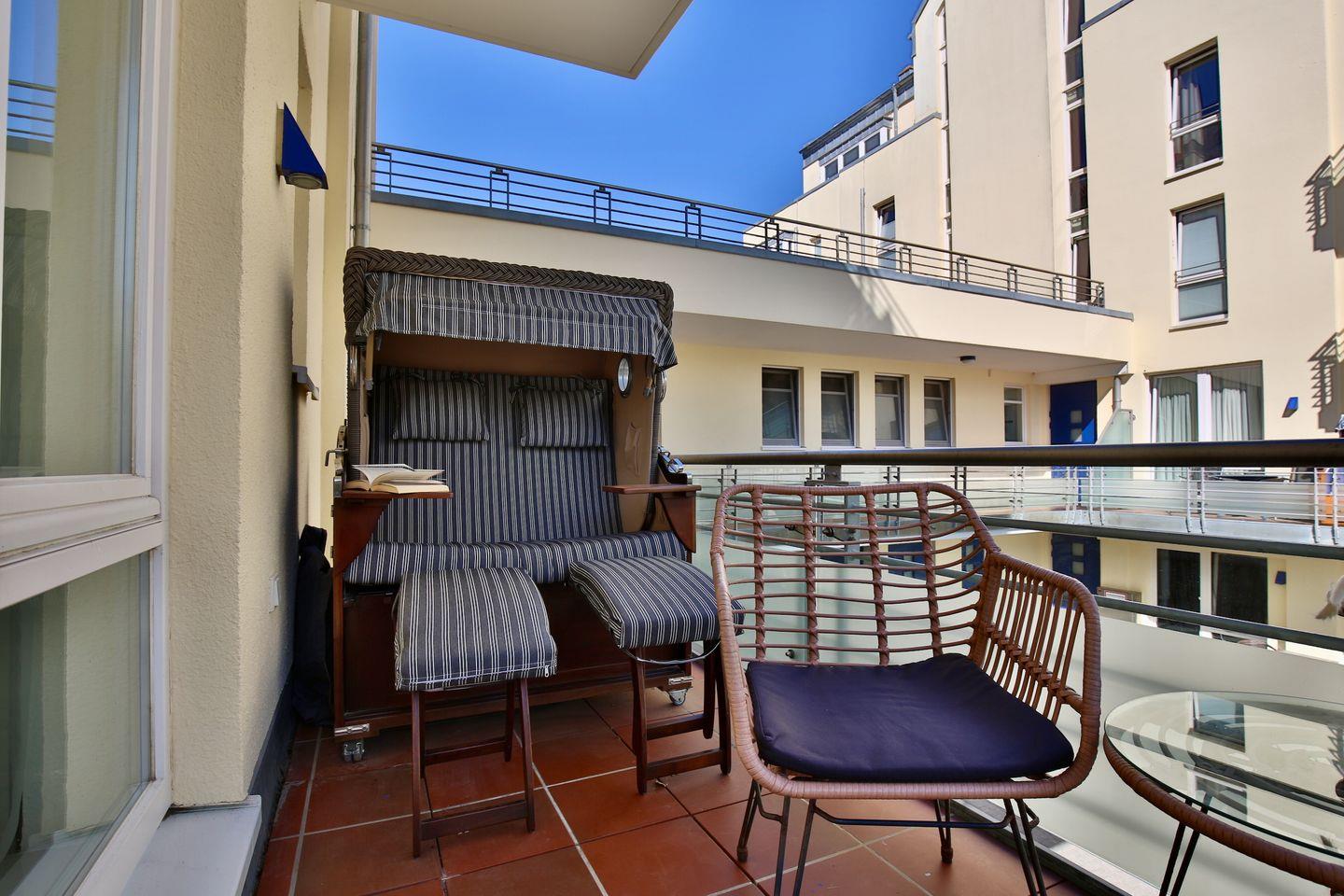 Ein einzigartiger Vorteil des Kaiserhof 14 ist der Balkon, der sowohl tagsüber als auch abends zum Verweilen einlädt. Hier können Sie den Tag bei einem guten Glas Wein ausklingen lassen.