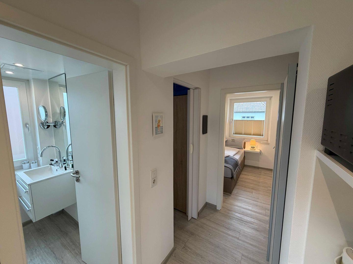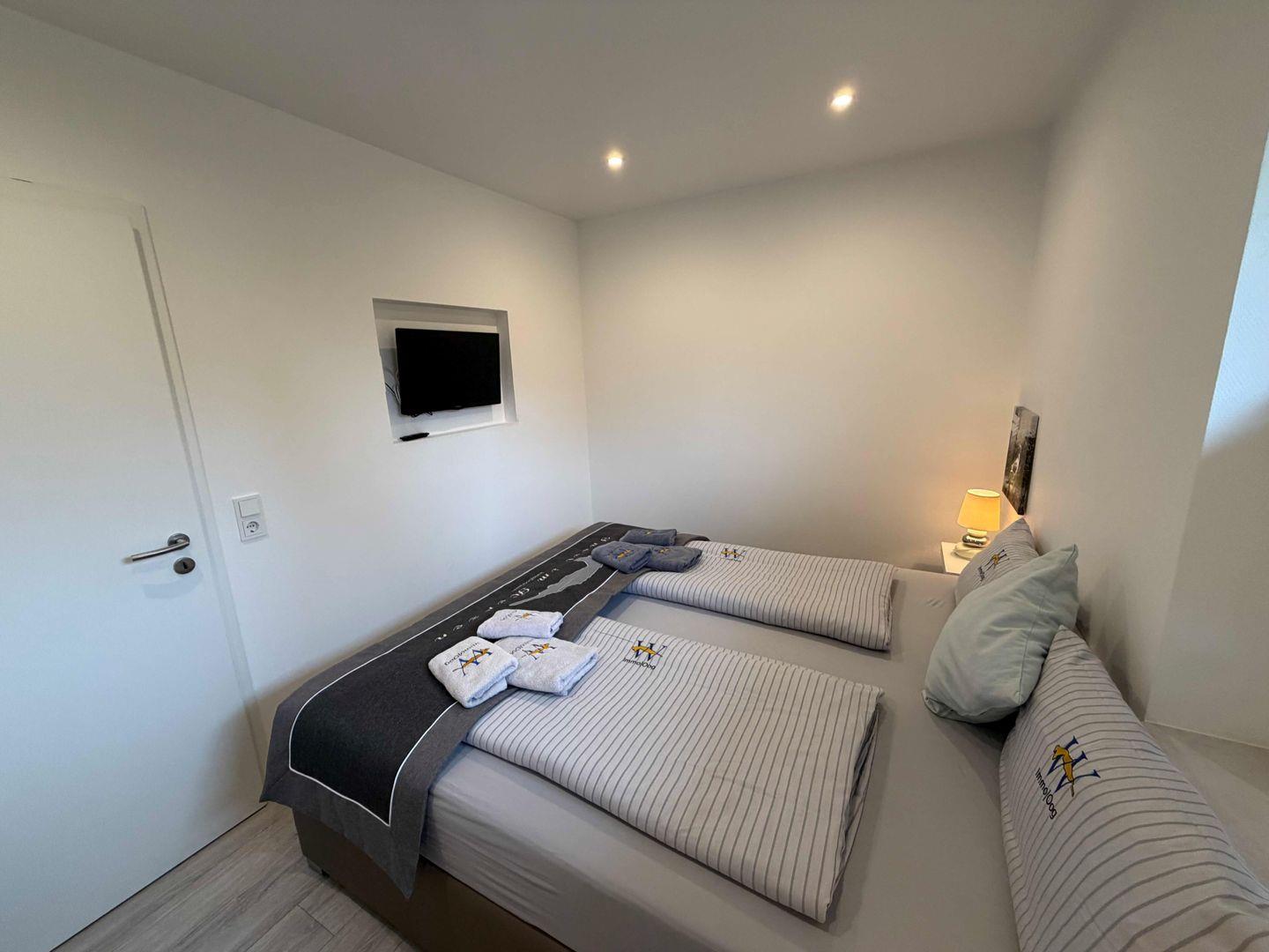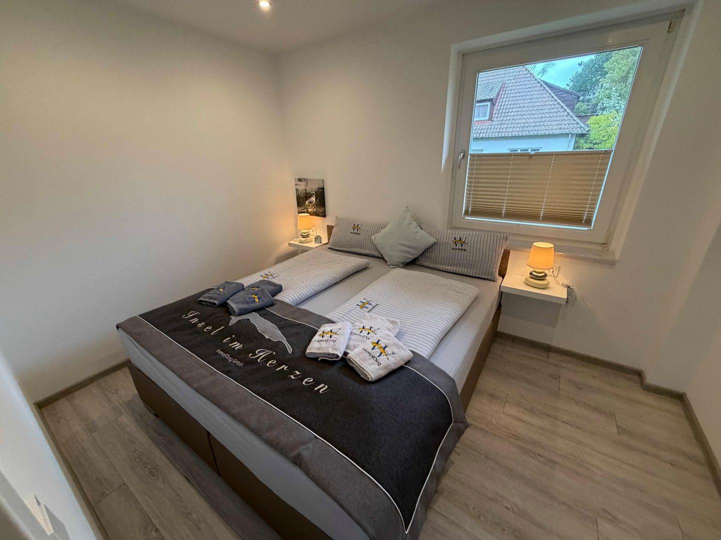 Das Apartment verfügt über zwei Zimmer, darunter ein separates Schlafzimmer mit hochwertigem Vinylboden, Sichtschutz für alle Fenster und gemütlicher Atmosphäre. Der offene Wohnbereich bietet eine komfortable Sofaecke sowie einen Sessel und wird durch einen gemütlichen Essbereich ergänzt. Ein digitales TV-Gerät mit internationalen Kanälen, ein weiteres TV-Gerät im Schlafzimmer, Radio und WLAN ab 25Mbit/s sorgen für angenehme Unterhaltung.