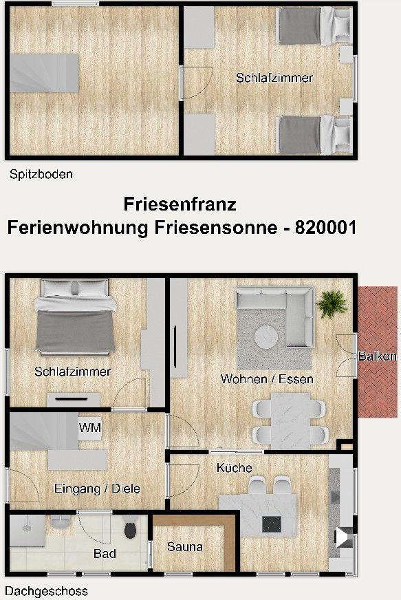 Herzlich willkommen in der komplett neu eingerichteten (2026) Maisonettewohnung „Friesensonne“. Ihr Rückzugsort im "Friesenfranz" auf Wangerooge, der modernen Komfort und nordisches Flair vereint. Wie der Wohnungsname verspricht, genießen Sie auf dem Balkon erholsame Sonnenstunden. Nur ein kurzer Spaziergang, schon sind Sie am feinsandigen Badestrand!