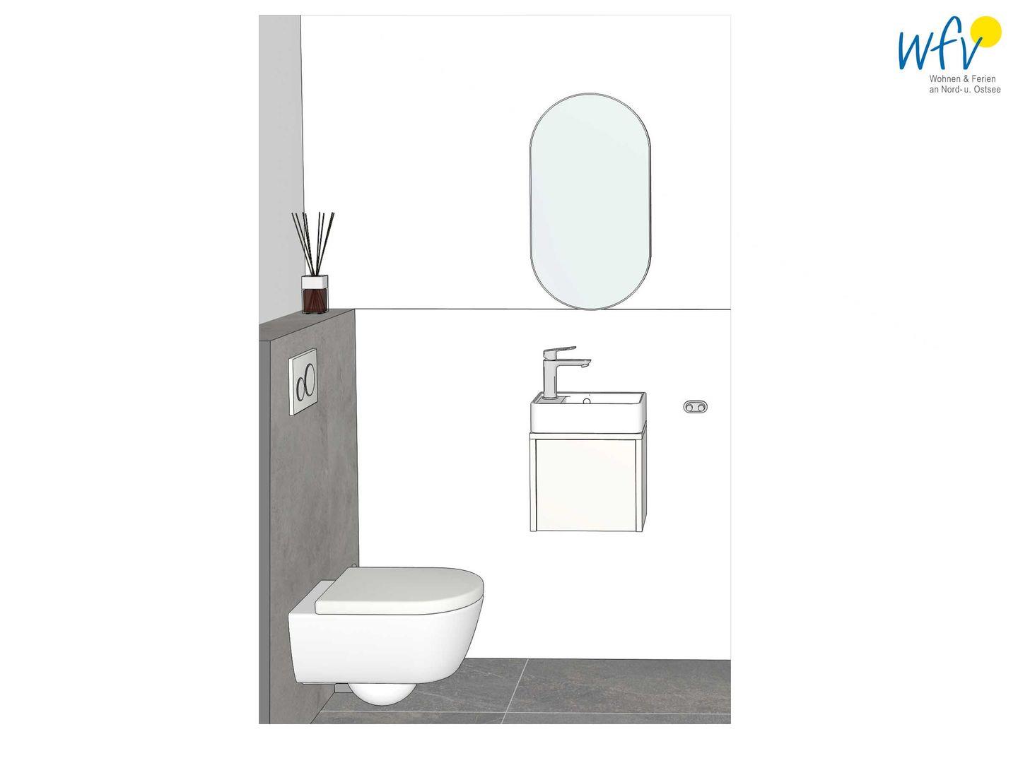 Weiteren Wohnkomfort bietet Ihnen das moderne Tageslichtbad mit ebenerdiger Dusche, breitem Waschtisch und fein abgestimmter Beleuchtung. Ein separates WC entspannt die täglichen Badezimmerroutinen.