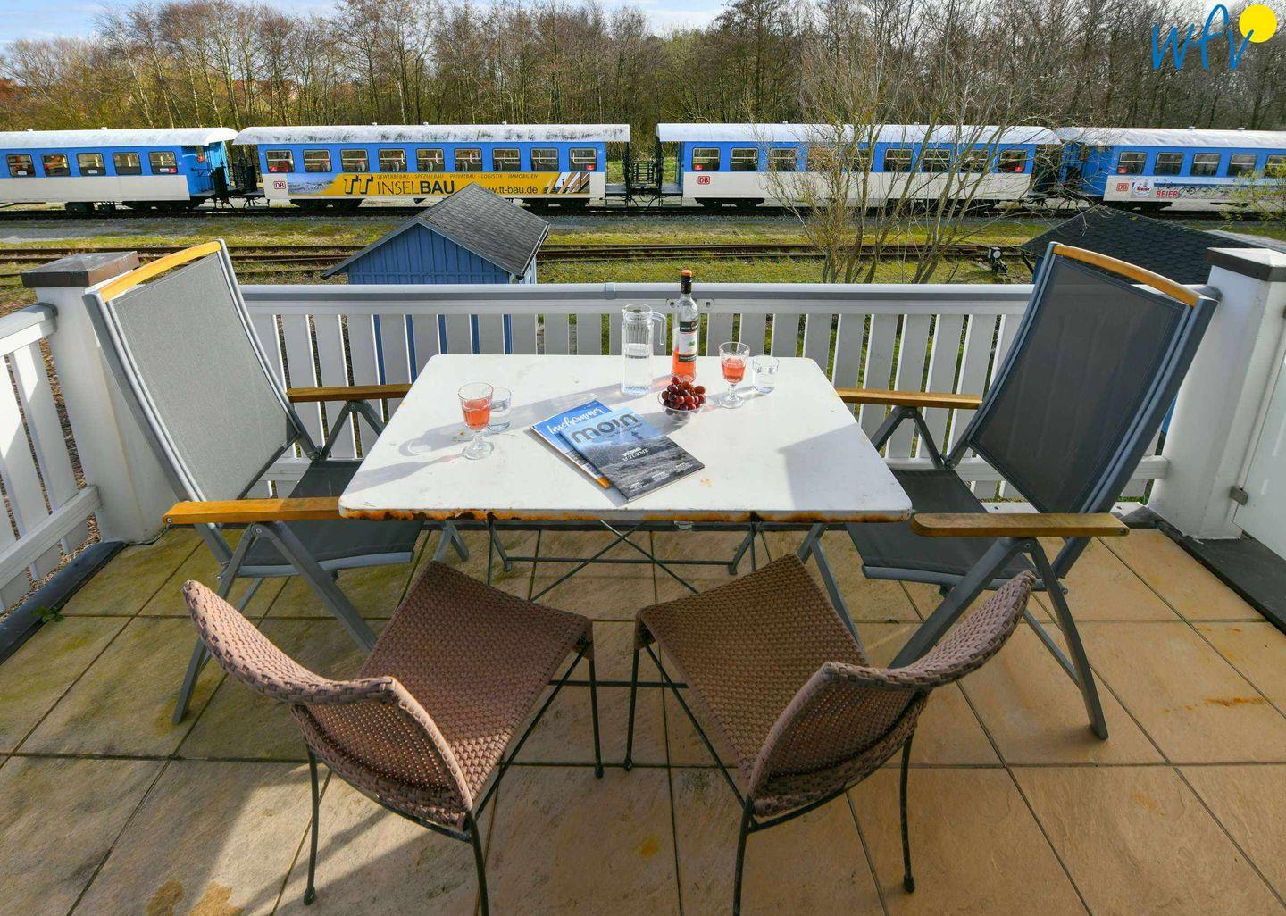 Nach nur 300 m ist der westliche Stadtrand von Wangerooge erreicht und Deich mit Watt und Weite liegen vor Ihnen. Schnell oder gemächlich, ganz wie Sie wollen, sind Sie am Hauptstrand oder mitten auf der Kurpromenade. Hinter dem Haus fährt zwei bis drei Mal am Tag die Inselbahn gemächlich vorbei - eine Attraktionen der Insel Wangerooge!