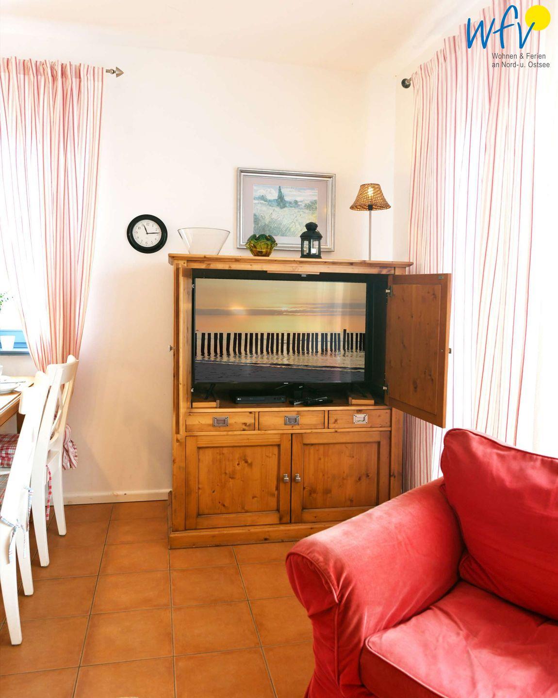 Die Wangerooger Ferienwohnung verfügt über einen großzügigen Wohnbereich mit hochwertiger Einrichtung, gemütlichem Sofa und Urlaubssessel. Die Stereoanlage mit Dolby-Surround und integriertem DVD-Spieler lässt neben Filmen auch Ihre mitgebrachte Musik (USB) gut zur Geltung kommen.
