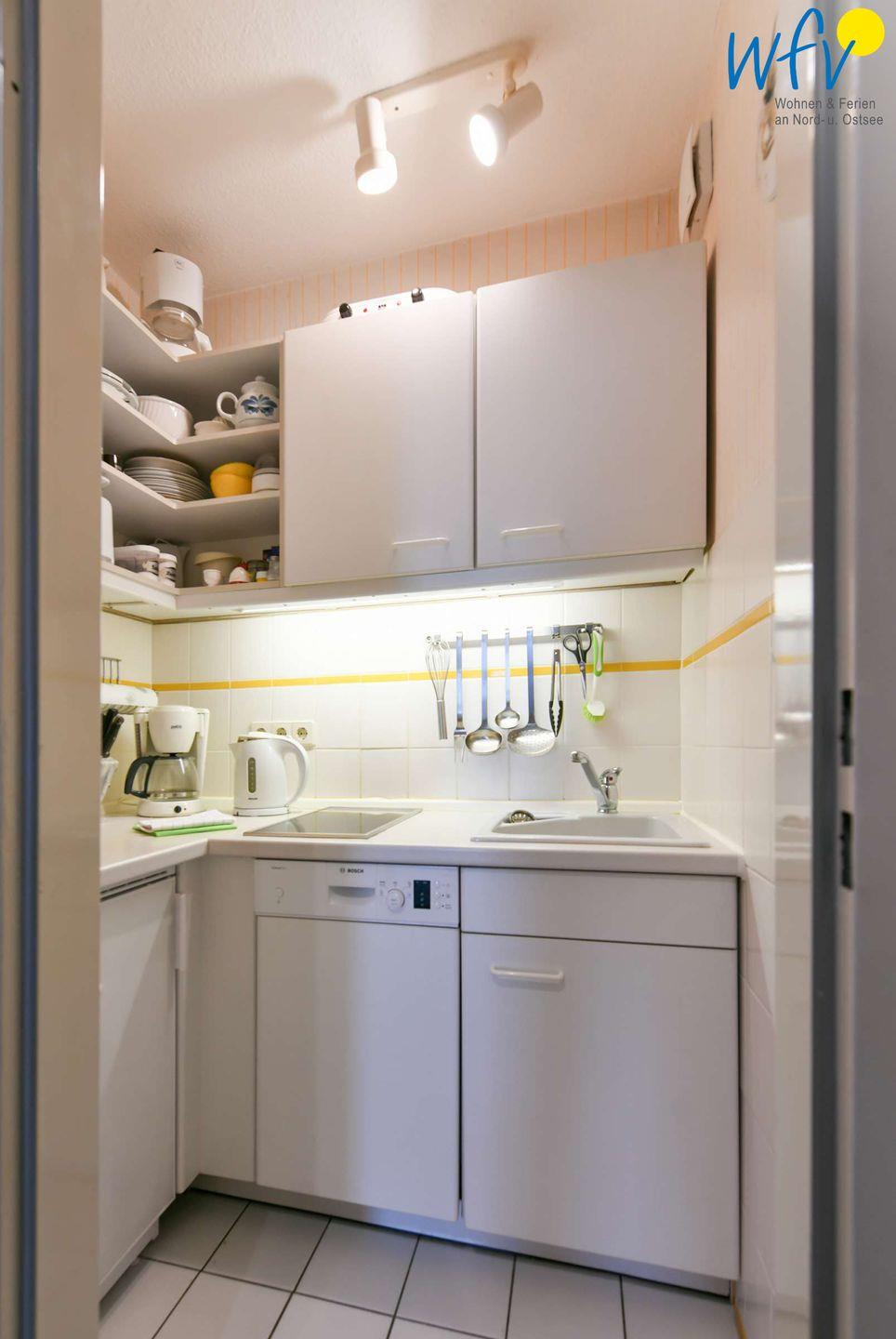 Die Einbauküche - u.a. mit Zwei-Plattenherd, Mikrowelle und Geschirrspüler - ermöglicht Ihnen, sich in der Ferienwohnung bequem selbst zu verpflegen.