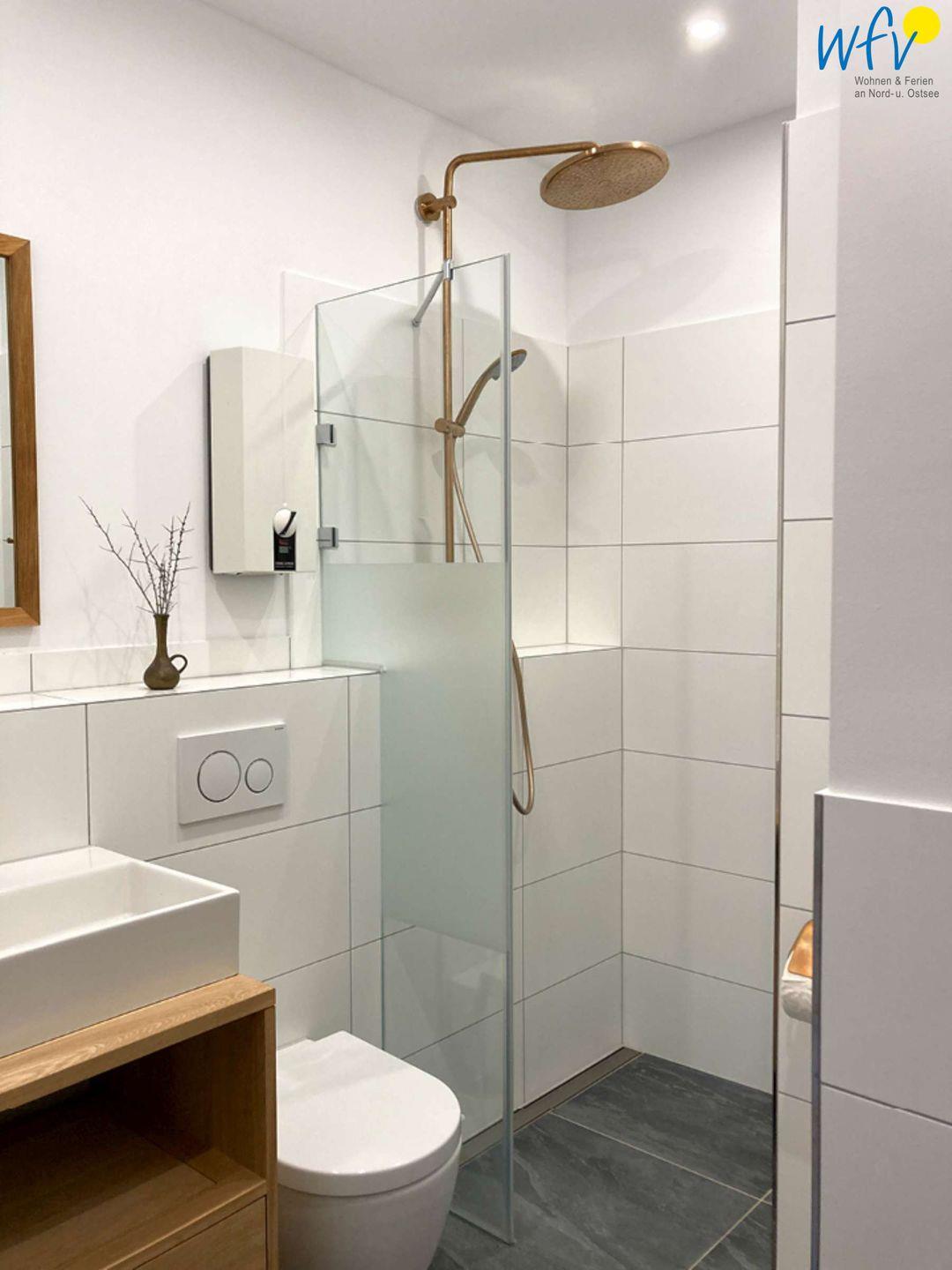 Wohnkomfort erwartet Sie auch im Duschbad! Durch stilvolles Design besitzt der Raum ein sehr gepflegtes Ambiente.