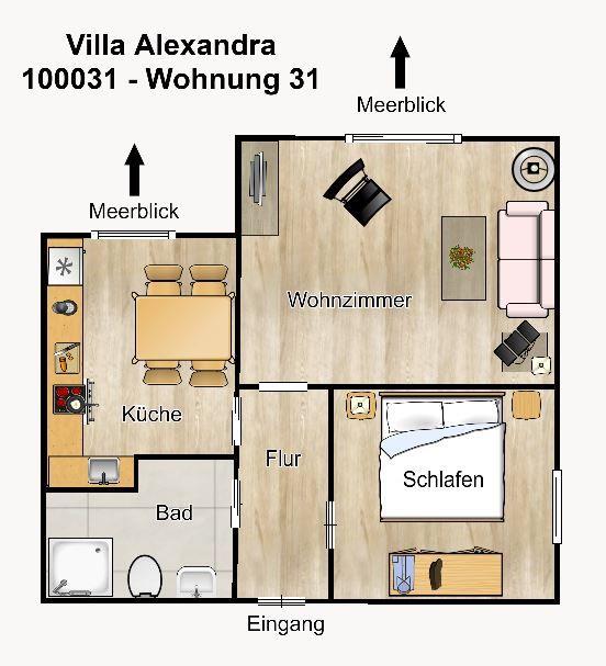 Herzlich willkommen in der "Villa Alexandra" - in dieser Ferienwohnung auf Wangerooge haben Sie eine fantastische Aussicht auf die Nordsee. Der Sandstrand befindet sich direkt vor Ihrer Haustür!