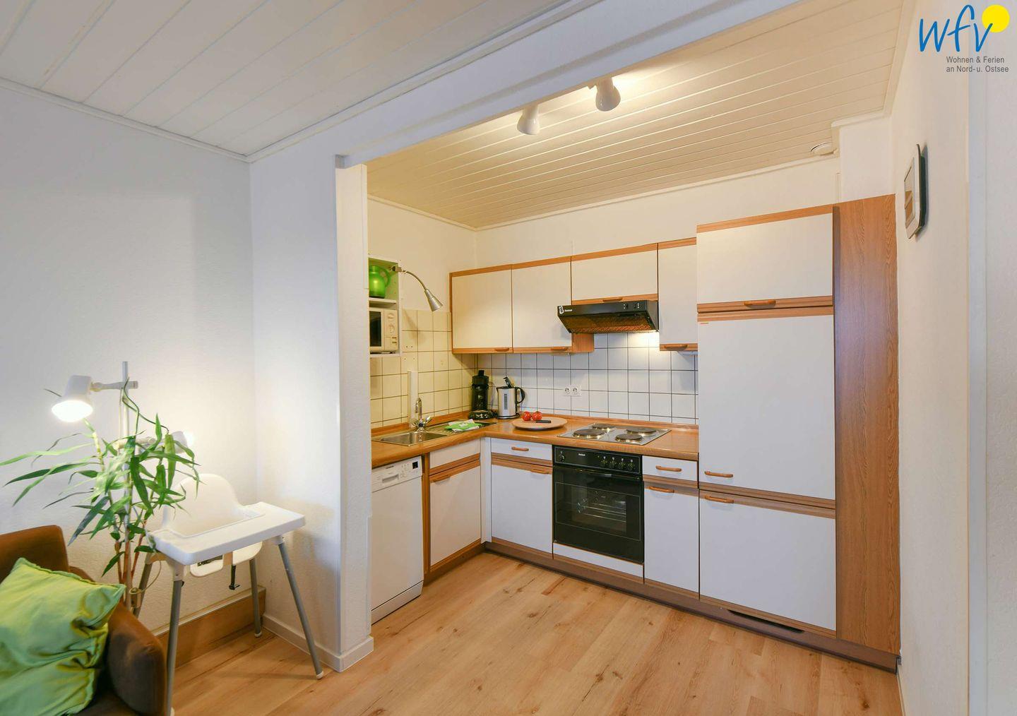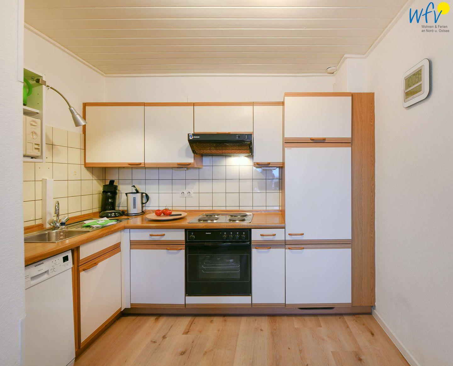 Für eine bequeme Selbstverpflegung ist die integrierte Küche u.a. mit einem 4-Plattenherd / Backofen, Geschirrspüler, Kaffeemaschine, Senseo-Kaffeeautomat, Wasserkocher, Toaster, Mixer und Mikrowelle ausgestattet.
