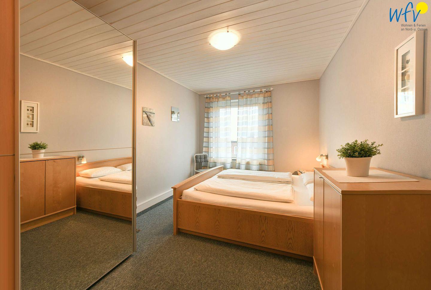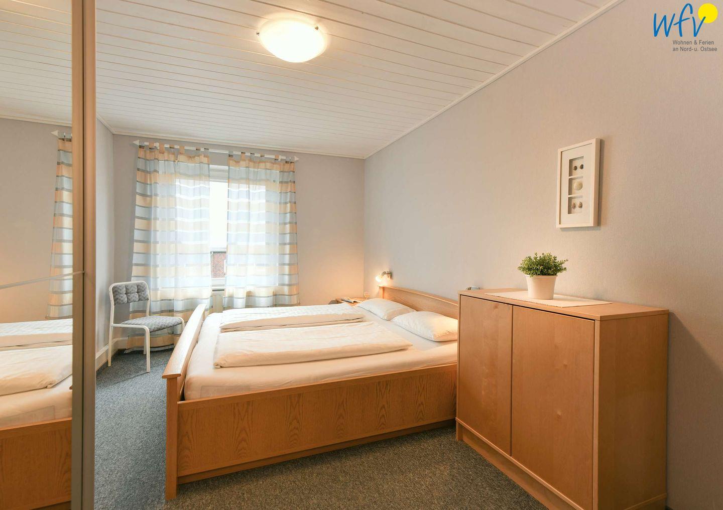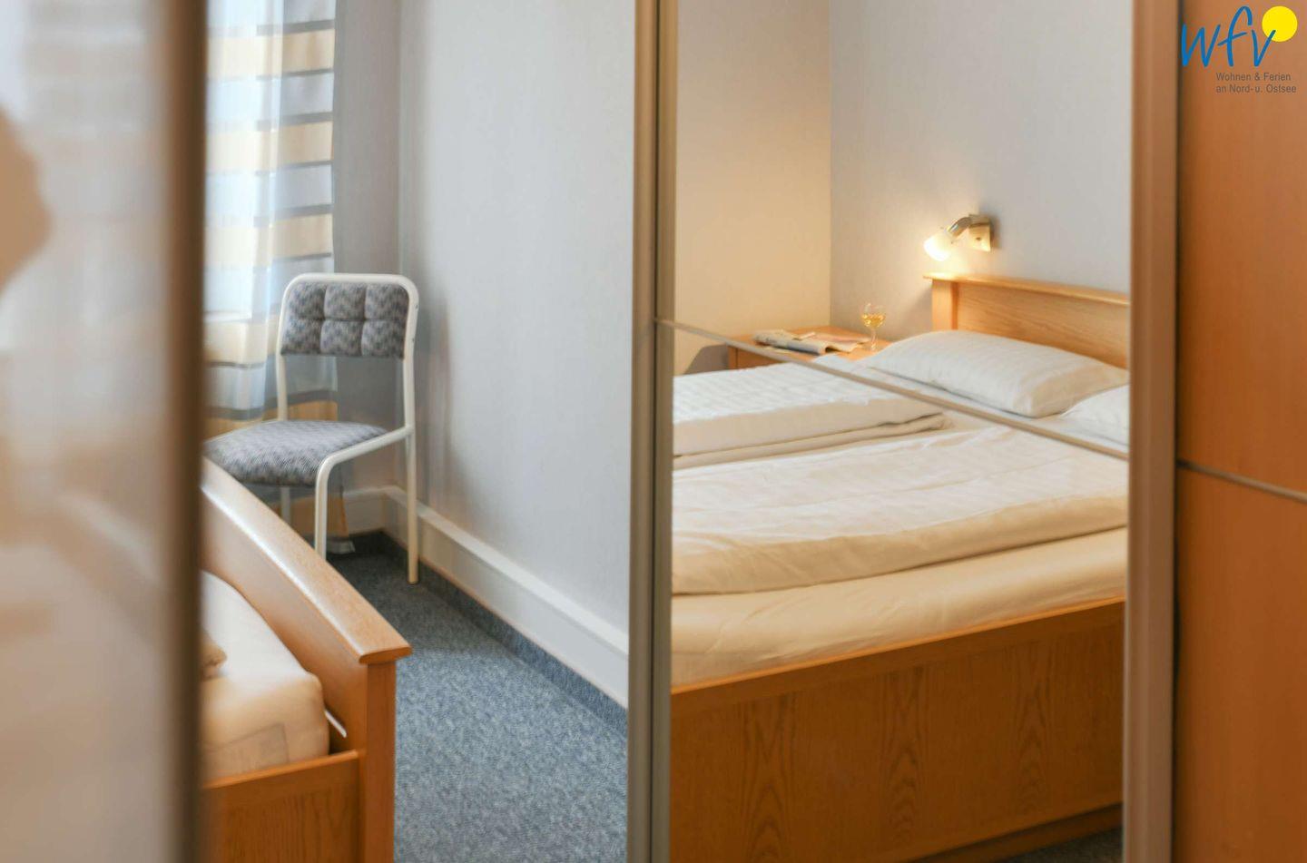 Wunderbar Entspannen können Sie auch in dem separaten Schlafzimmer mit Doppelbett ( 1,80 x 2,00m )! So herrlich gemütlich ist es. Ein eigener Waschtisch mit Spiegel bietet hier zusätzlichen Wohnkomfort.
