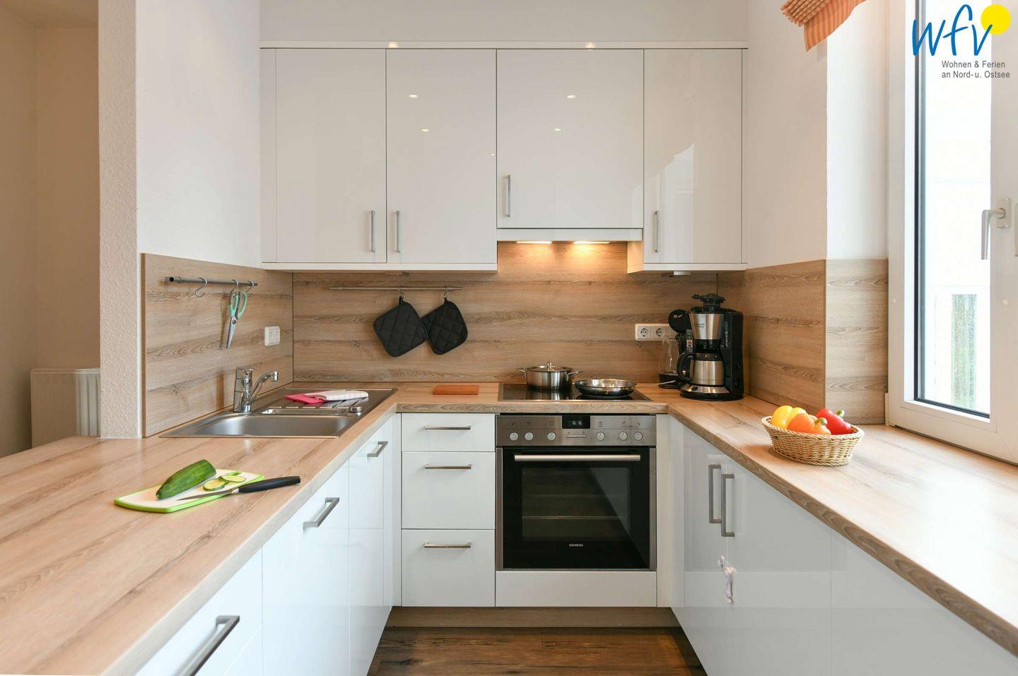 Urlaubszeit ist Familienzeit! Zum gemeinsamen Kochen verfügt die moderne Einbauküche u.a. über einen 4-Plattenherd, eine Mikrowelle und einen Backofen. So können Sie schnell und einfach leckere Gerichte zaubern. Für die Mahlzeiten gibt es einen großen Esstisch, den Abwasch erledigt die Spülmaschine.