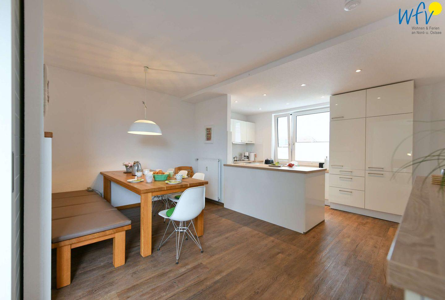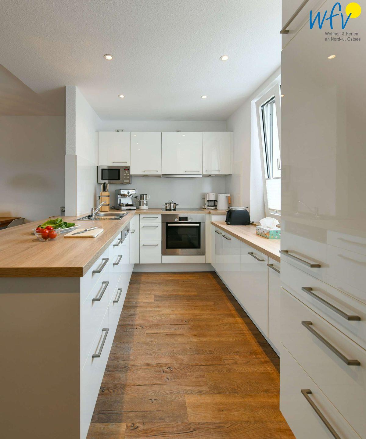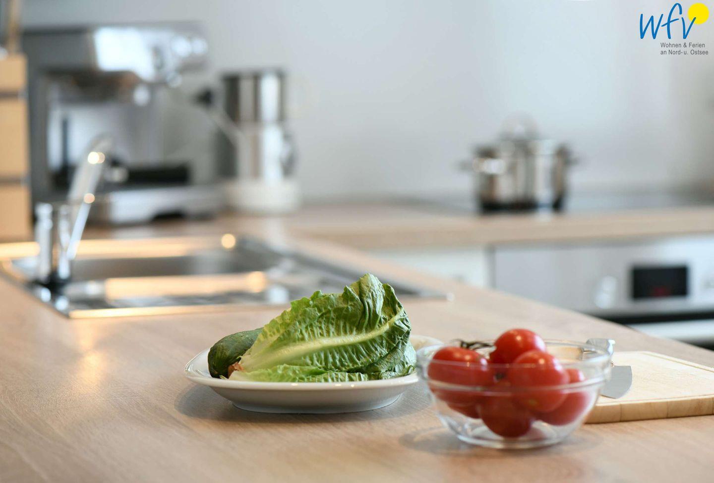 Das gemeinsame Kochen wird in der hochwertig ausgestatteten Wohnküche zum echten Highlight! Sie verfügt u.a. über einen Ceranfeld-Herd mit Backofen, einen Mikrowellenherd, einen großen Kühlschrank mit 3-Sterne-Fach und einen Geschirrspüler sowie ausreichend Besteck, Geschirr und gesondertes Kindergeschirr (Melamin). Darüber hinaus sind diverse Kleingeräte wie eine Siebträger-Espresso-Maschine, eine Kaffeemaschine, ein Toaster, ein Wasserkocher und ein Mixer vorhanden.
