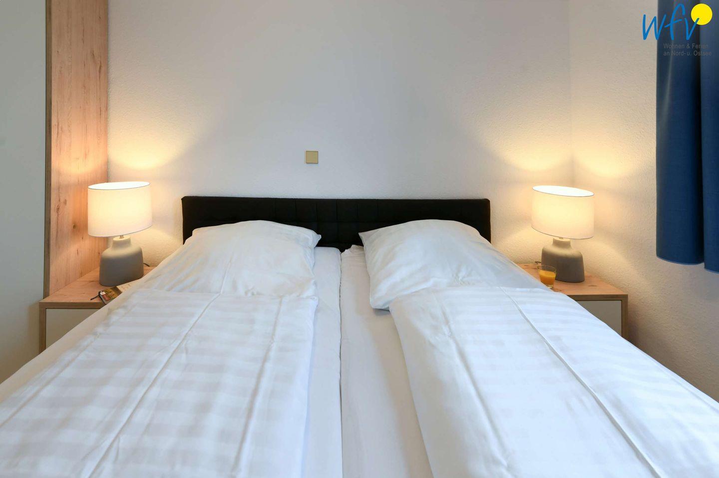 Wunderbare Aufteilungsmöglichkeiten bieten die zwei separaten Schlafzimmer. Im Elternschlafzimmer befindet sich ein Doppelbett, im Kinderzimmer ein Etagenbett. Für die Urlaubsgarderobe gibt es geräumige Kleiderschränke.