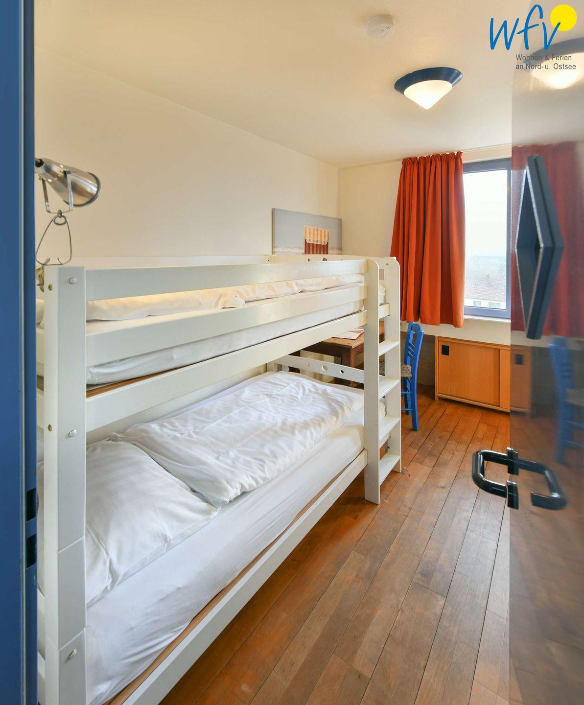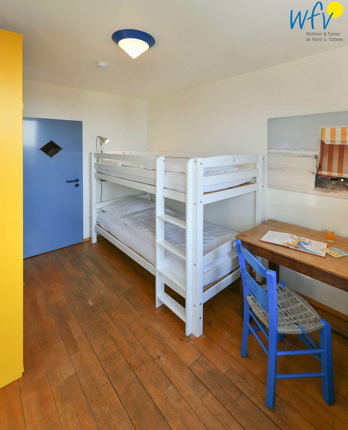 Drei separate Schlafzimmer bieten Ihnen angenehme Aufteilungsmöglichkeiten. Eines der Schlafzimmer ist mit einem Doppelbett eingerichtet; von hier aus haben Sie einen eigenen Zugang zum Bad und zur Sauna. Zwischen dem Kinderschlafzimmer mit Etagenbett und einem weiteren Schlafraum mit Doppelbett befindet sich das zweite Duschbad. Gerne stellen wir Ihnen kostenfrei ein Kinderbett und einen Kinderhochstuhl zur Verfügung.