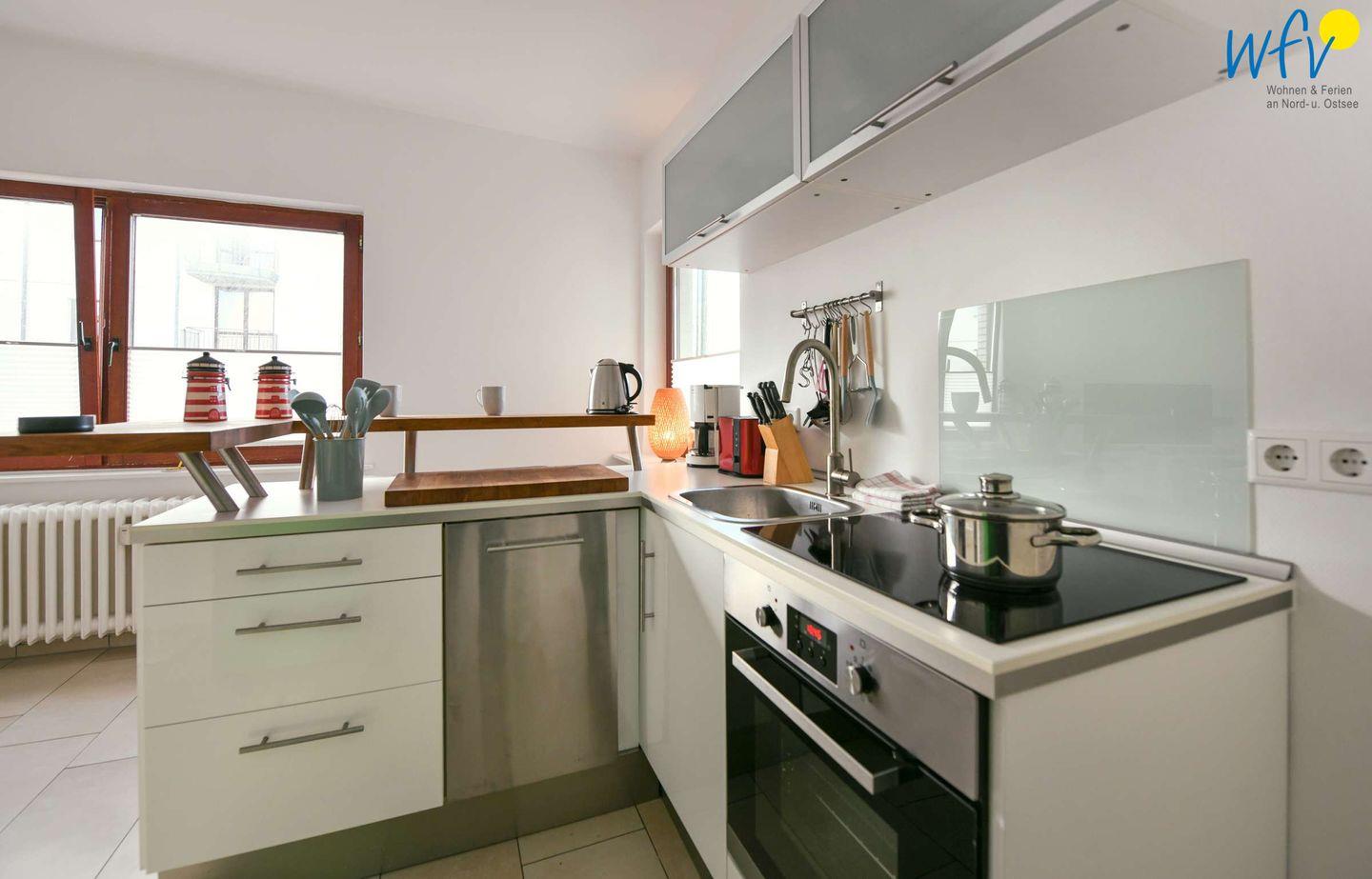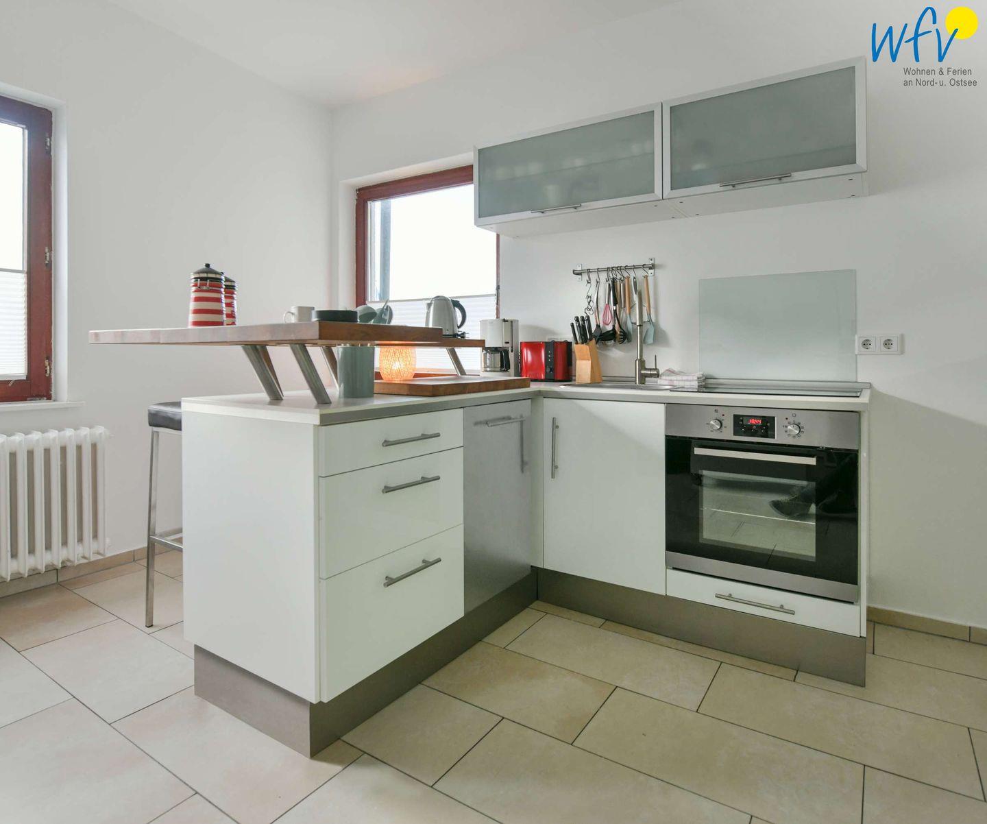 Die offene voll ausgestattete Küche verfügt u.a. über einen Geschirrspüler und einen Backofen. So wird die Selbstverpflegung leicht und praktisch!