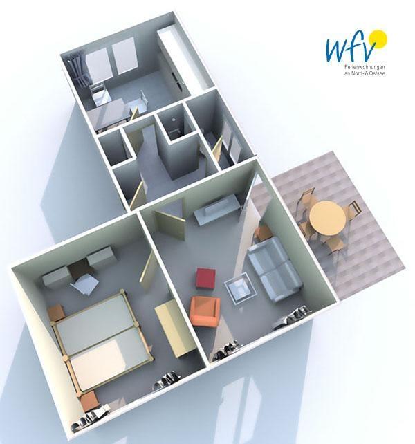 Träumen Sie von Nordseeluft und warmen Sonnenstrahlen? Die Richtung Osten liegende Ferienwohnung besitzt eine wunderschöne Terrasse mit Strandkorb für erholsame Stunden. Hier ganz in Ruhe ein gutes Buch zu lesen oder einfach mal die Seele baumeln zu lassen ist ein wunderbares Urlaubsgefühl!