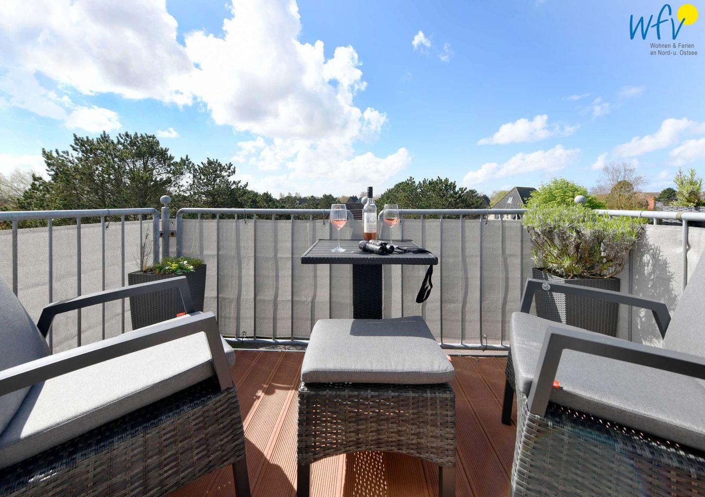 Sonnenstunden auf dem Balkon, gemütliche Filmabende im Wohnraum oder ausgiebiges Ausschlafen in bequemen Betten - unsere moderne "Ferienwohnung Strandläufer" auf Wangerooge bietet Ihnen auf 90 m² Wohnfläche 100% Erholungsfaktor!