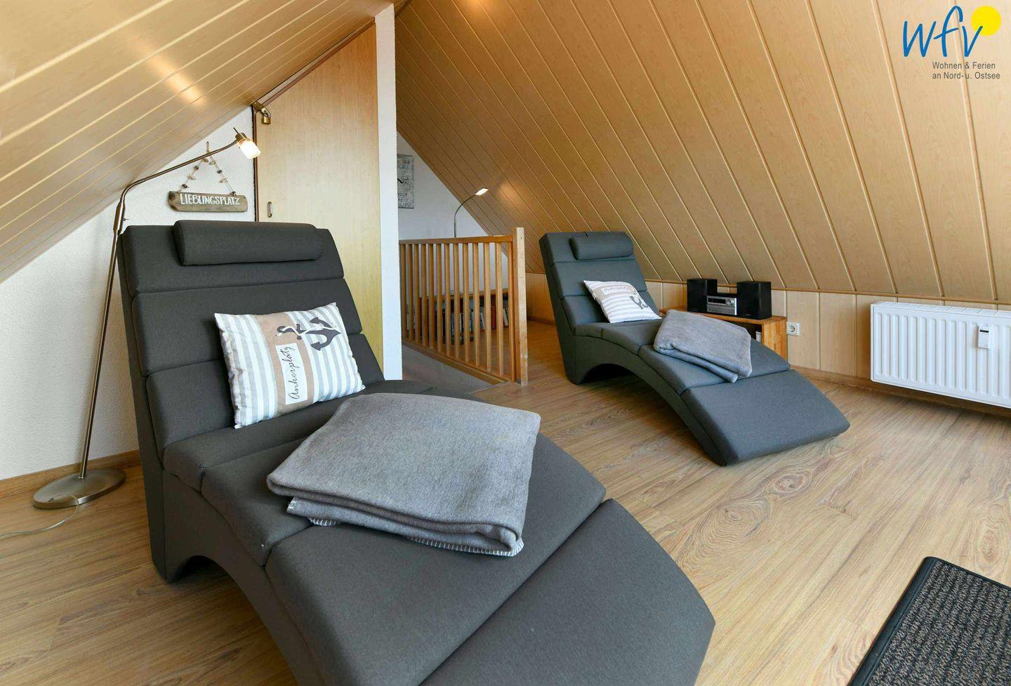 - Dachgalerie mit zwei Relax-Liegen und großer Musik-Auswahl