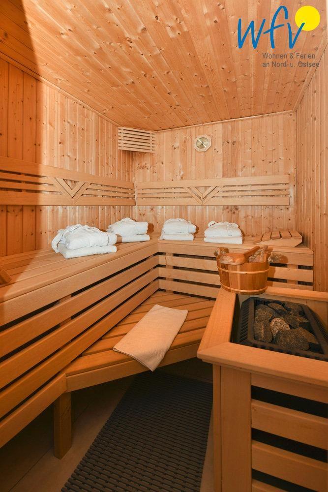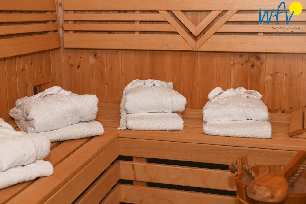 Die eigene Sauna, eine Fußbodenheizung - selbst im Bad - sowie eine hochwertige technische Ausstattung (3 TV`s, DVD-Player und kostenloses WLAN) sorgen für zusätzlichen Wohnkomfort in Ihrem Urlaub.