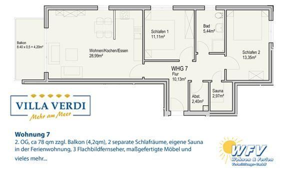Planen Sie einen Urlaub zu viert? Mit der Familie oder mit Freunden? Diese schöne, geräumige Ferienwohnung (78 m²) mit komfortabler Einrichtung, sonnigem Balkon und eigener Sauna garantiert Ihnen einen Wangerooge-Urlaub auf hohem Niveau!