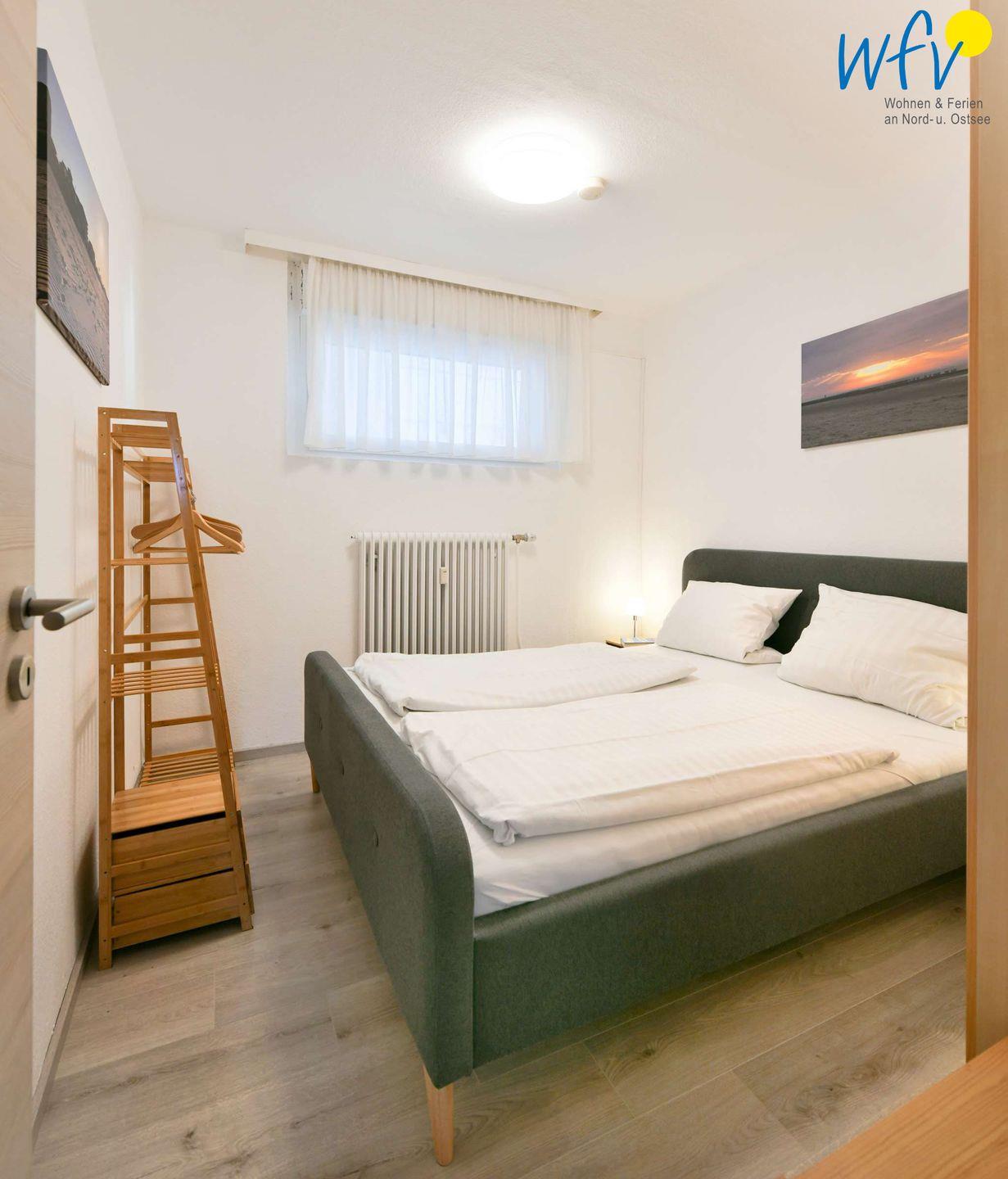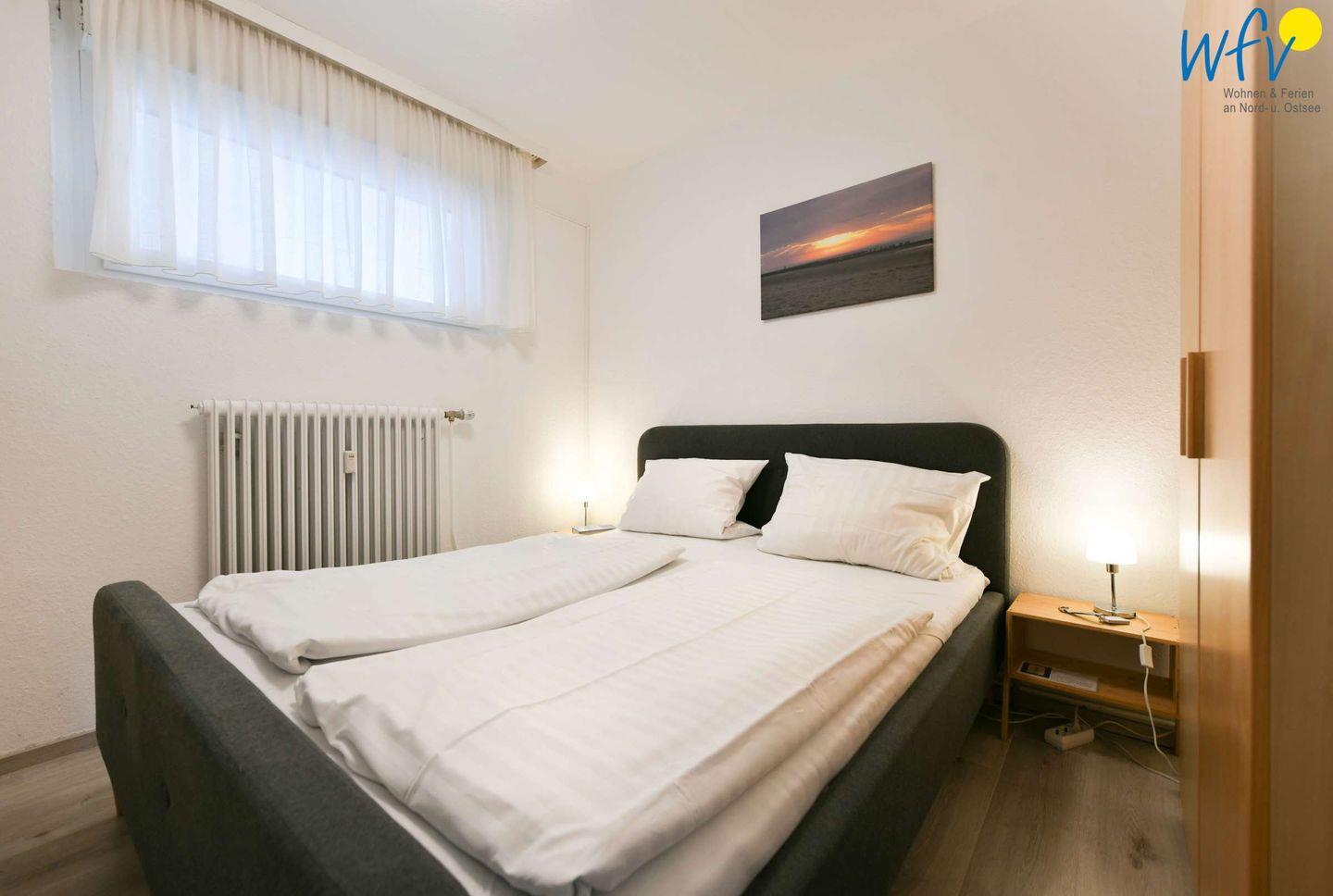 Das separate Schlafzimmer der Ferienwohnung ist mit einem komfortablen Doppelbett ausgestattet. Da das Zimmer zum Innenhof hin liegt, ist es sehr ruhig. Zudem sorgt ein schallisolierendes Fenster mit schalldämmenden Rollladen (Funksteuerung) für angenehme Nachtruhe. Im Wohnzimmer befindet sich eine sehr bequeme Schlafcouch als weitere Übernachtungsmöglichkeit. Dort wurde ebenfalls ein Rollladen (Funksteuerung) an der Fensterfront zur Verdunkelung und zum Schallschutz am Abend/bei Nacht installiert.