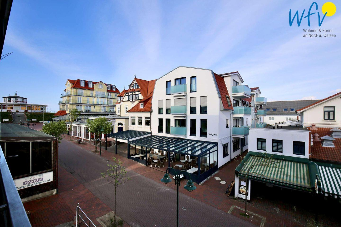 Mit einer komfortablen und liebevollen Einrichtung besitzt die Ferienwohnung eine Atmosphäre, in der Sie sich rundum wohlfühlen werden. Besonders schön ist der Blick vom Balkon auf Wangerooges Flaniermeile. Hier können Sie ganz in Ruhe im Gartenstuhl sitzen und dem Treiben der Urlauber zuschauen. Seitlich erblicken Sie sogar das berühmte Cafè Pudding mit Meerblick, das mittlerweile zum Wahrzeichen Wangerooges geworden ist!