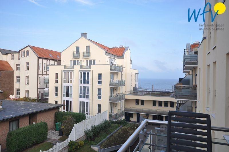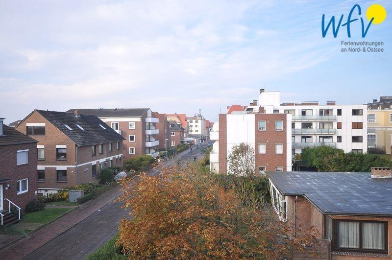 Genießen Sie eine Aussicht auf Wangerooges Naturlandschaft! Vom Westbalkon der Ferienwohnung haben Sie einen seitlichen Meerblick. Das große Wohn-/Esszimmer ist südlich ausgerichtet und bietet einen Blick bis auf das Wattenmeer.