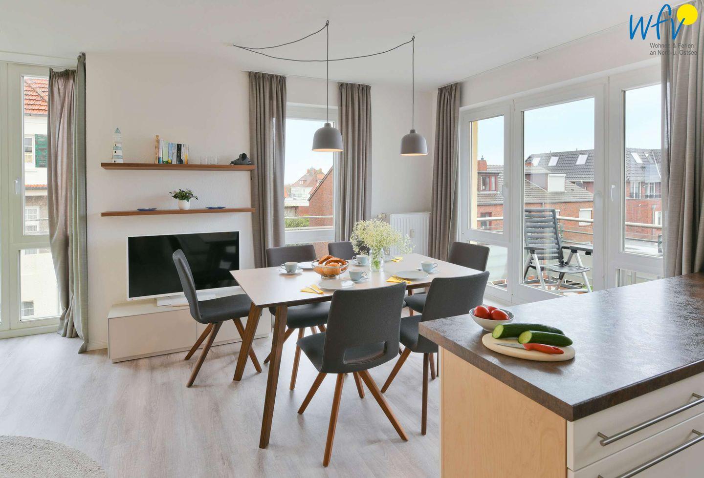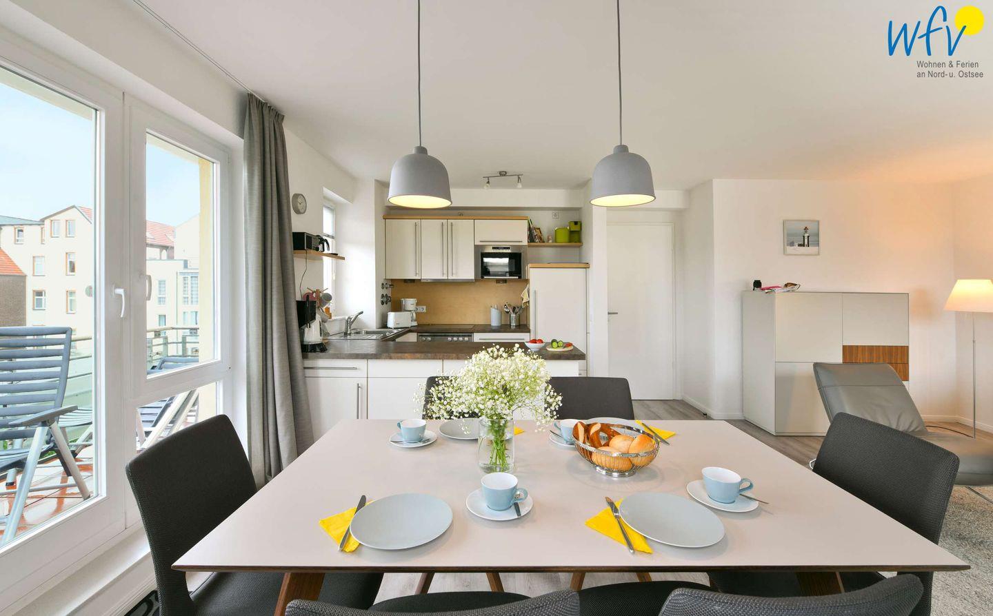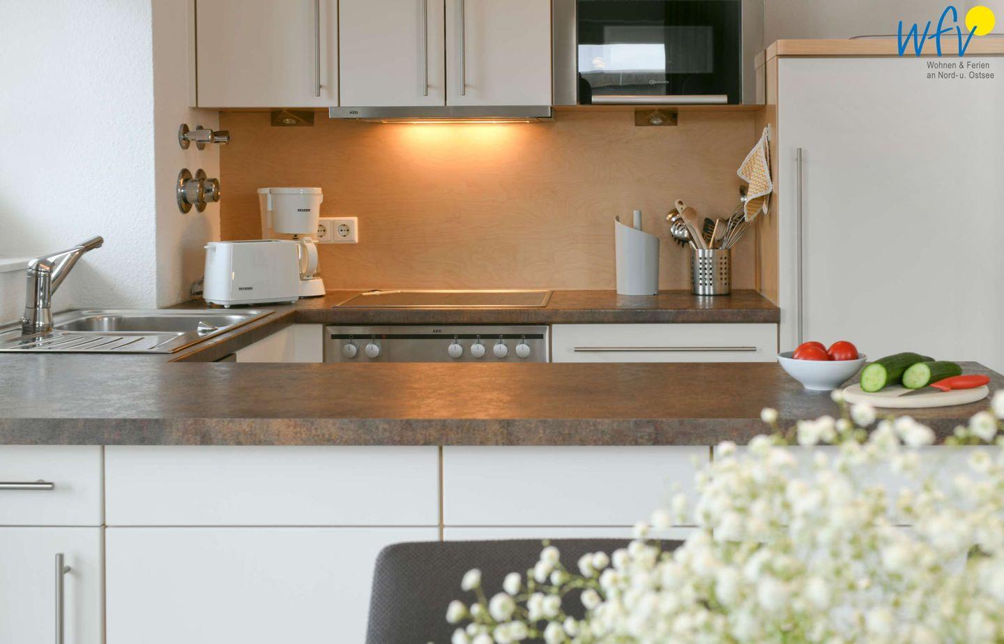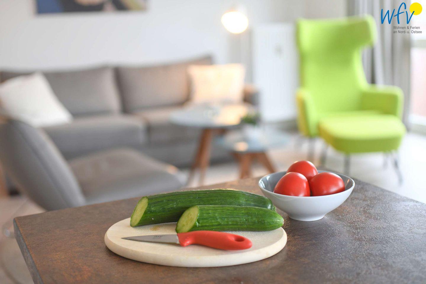 Die Selbstverpflegung wird in der modernen Einbauküche zum Kinderspiel! Mit Mikrowelle, Geschirrspüler und Thekenbereich schafft sie die perfekte Voraussetzung, um auch im Urlaub bequem kochen zu können. Oder Sie lassen sich verwöhnen und speisen auf der schönen Meerblickterrasse des hauseigenen Restaurants "Krüsch"! Auf der Terrasse in direkter Promenaden- und Strandnähe genießen Sie herrliche Stunden mit Meeresbrise.