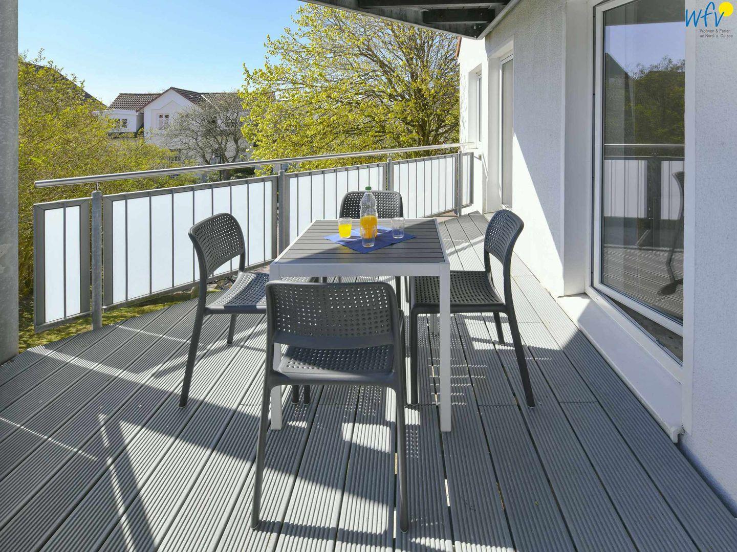 Die Ferienwohnung ist mit zwei separaten Schlafzimmern, Badezimmer mit großer Dusche und Wickeltisch sowie großzügigem Wohn- Esszimmer und Balkon ideal für den Familienurlaub auf Wangerooge.