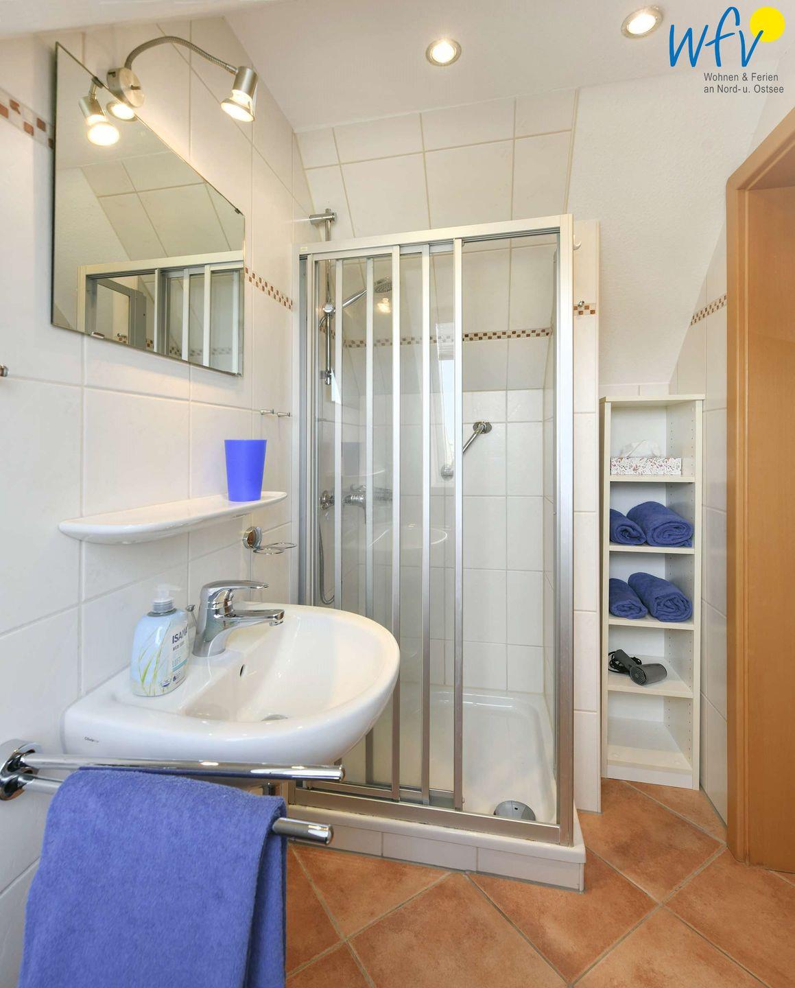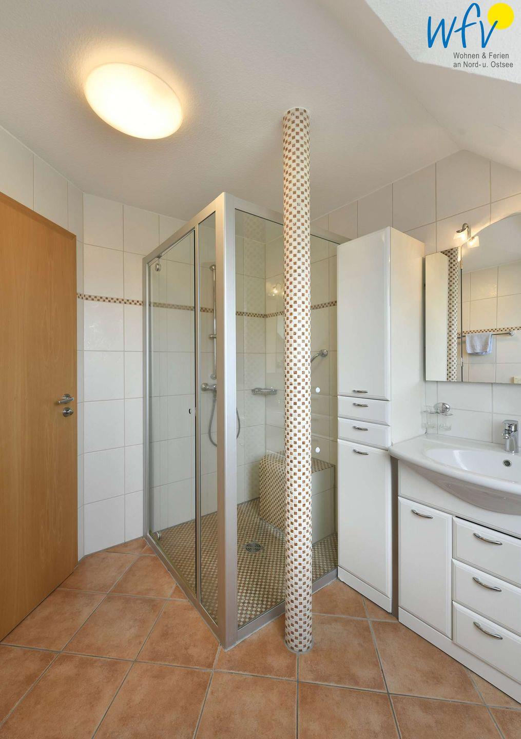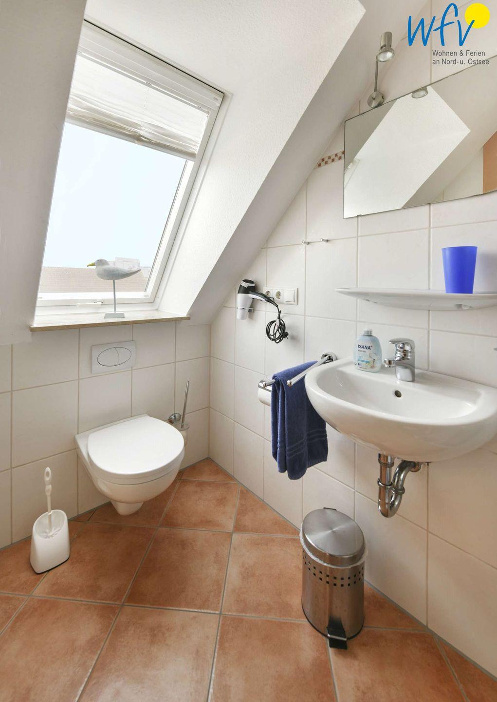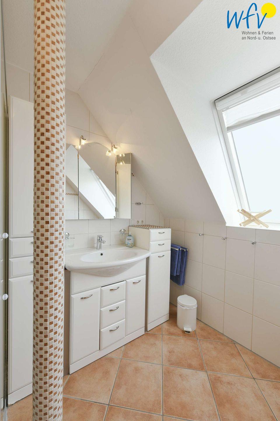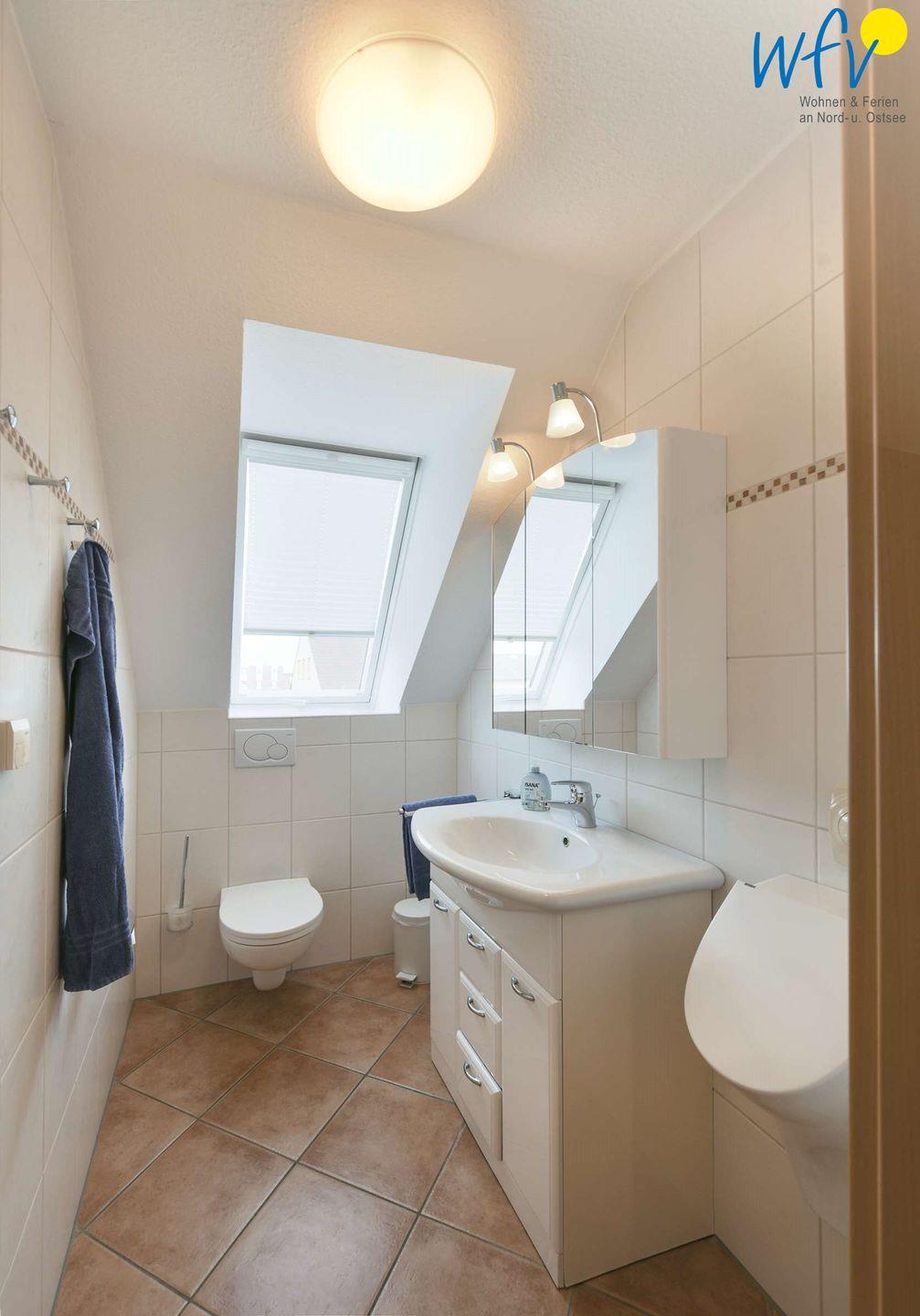 Zwei große Bäder mit Fenster und ebenerdiger Dusche sowie ein Gäste-WC mit Fenster ermöglichen auch bei einem Urlaub mit mehreren Personen angenehme Aufteilungsmöglichkeiten.