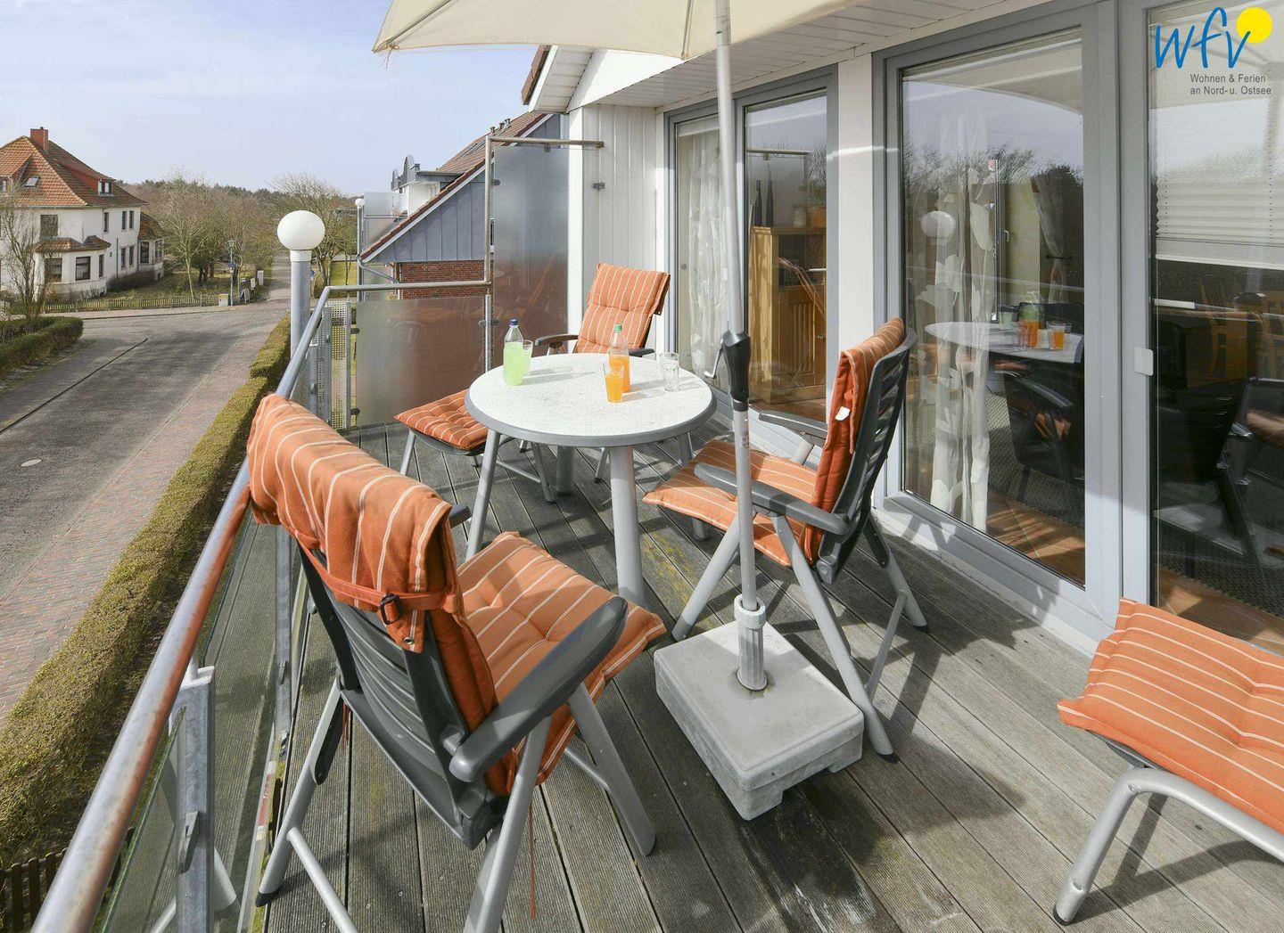 Der herrliche Südbalkon der Ferienwohnung bietet Ihnen einen wunderbaren Blick über den Steingarten bis hin zum Wattenmeer. Hier werden Sie sich mit der gesamten Familie absolut wohlfühlen.