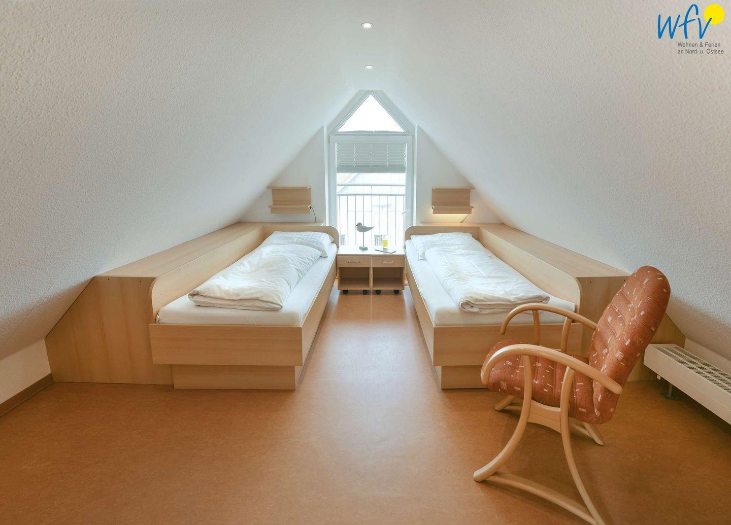 Drei separate Schlafzimmer verteilen sich auf beide Ebenen - ein Zimmer ist mit einem Doppelbett eingerichtet, die beiden anderen Zimmer mit jeweils zwei Einzelbetten. Auf der zweiten Etage befindet sich außerdem ein kleiner Schreibtisch mit bequemem Bürostuhl. So können Sie sich für kleine Arbeiten oder zum Mails checken vom Smartphone aus gerne zurückziehen. Sie empfangen kostenlos freies WLAN.