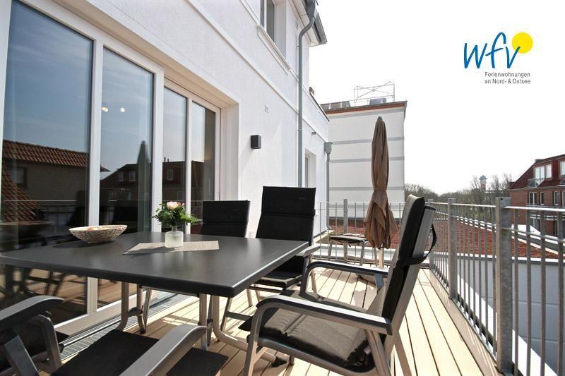 Freuen Sie sich auf entspannte Sonnenstunden! Auf dem hübsch möblierten Balkon (Esstisch, Stühle und Sonnenschirm) können Sie wunderbar zusammenzusitzen, frische Nordseeluft genießen und die Seele baumeln lassen - ein herrliches Urlaubsgefühl...