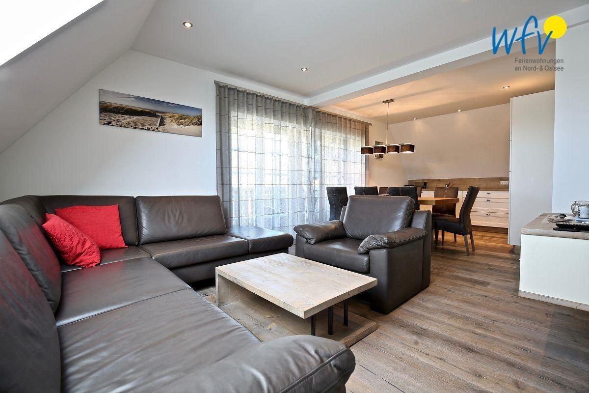 Genießen Sie in dieser komfortablen Ferienwohnung im modernen Landhausstil einen Urlaub mit Verwöhncharakter! Der helle und offene Wohnbereich sorgt mit großer Glasfront zum Süd-Balkon für ein tolles Ambiente. Besonders in der gemütlichen Couchecke mit LED-TV können Sie wunderbar gemeinsam entspannen! Die Wohnung bietet Platz für bis zu sechs Personen - also ideal für erholsame Tage mit der Familie oder mit Freunden.