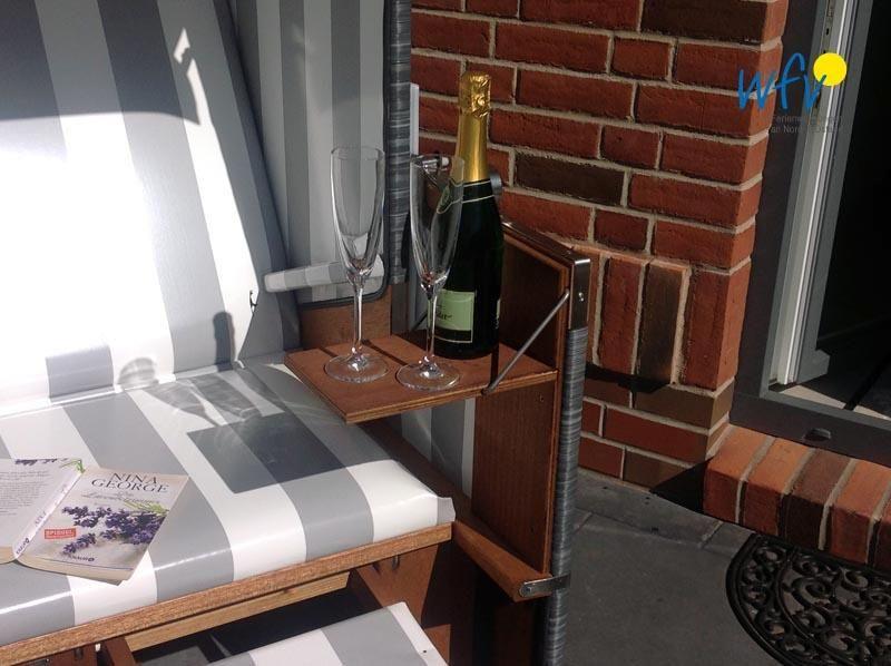 Für herrliche Relaxmomente besitzt die Ferienwohnung außerdem eine Südterrasse mit wohnungseigenem Garten - mit Sonne und Nordseeluft von morgens bis abends! Hier im Strandkorb ein gutes Buch lesen, im Garten spielen oder abends gemütlich bei einem Glas Wein den Tag ausklingen lassen - das ist Urlaub pur!