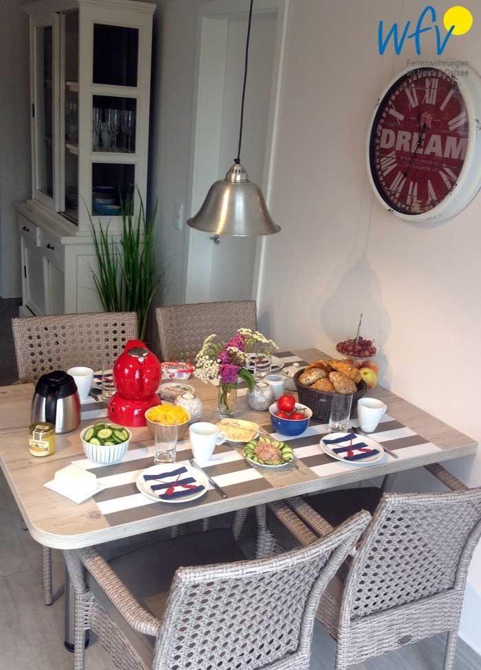 Auch an die Kochfans haben wir gedacht! Die moderne Küche ist voll ausgestattet - u.a. mit Ceranherd, Backofen und diversen Kleingeräten. Für das ausgiebige Urlaubsfrühstück, gemeinsame Mahlzeiten oder schöne Spieleabende gibt`s einen großen Esstisch.