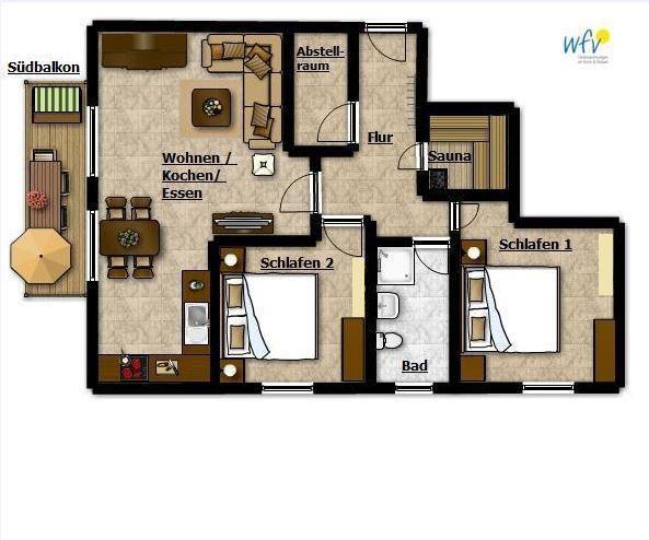 Erleben Sie in unserer Ferienwohnung einen Traumurlaub auf Wangerooge! Mit zwei separaten Schlafzimmern, einer eigenen Sauna und einem wunderschönen Sonnenbalkon bietet sie einen Wohlfühlort für die ganze Familie oder den Freundeskreis.