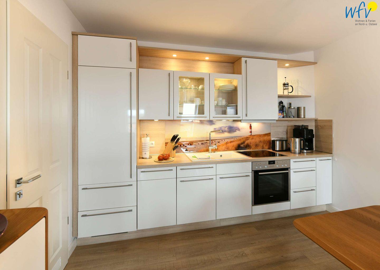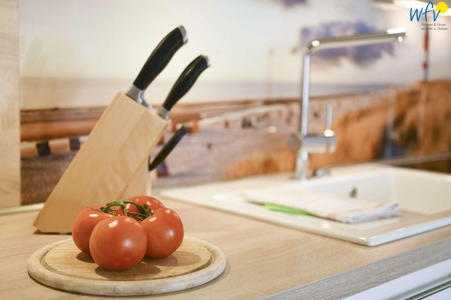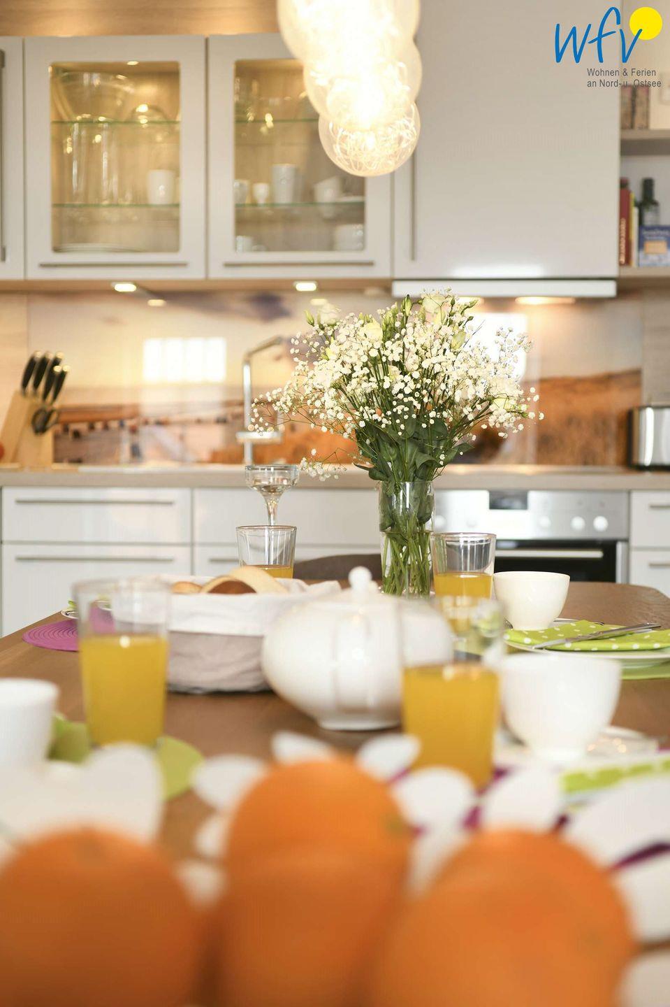 Auch gemeinsames Kochen macht im Urlaub Spaß! In der modernen Küche mit Backofen und Ceranfeld können Sie leckere Gerichte zaubern. Für Kaffeeliebhaber gibt es neben der Filtermaschine eine exklusive Kapsel-Kaffeemaschine. Den Abwasch erledigt später die Spülmaschine. Der große Essbereich lädt zu gemütlichen Mahlzeiten ein.