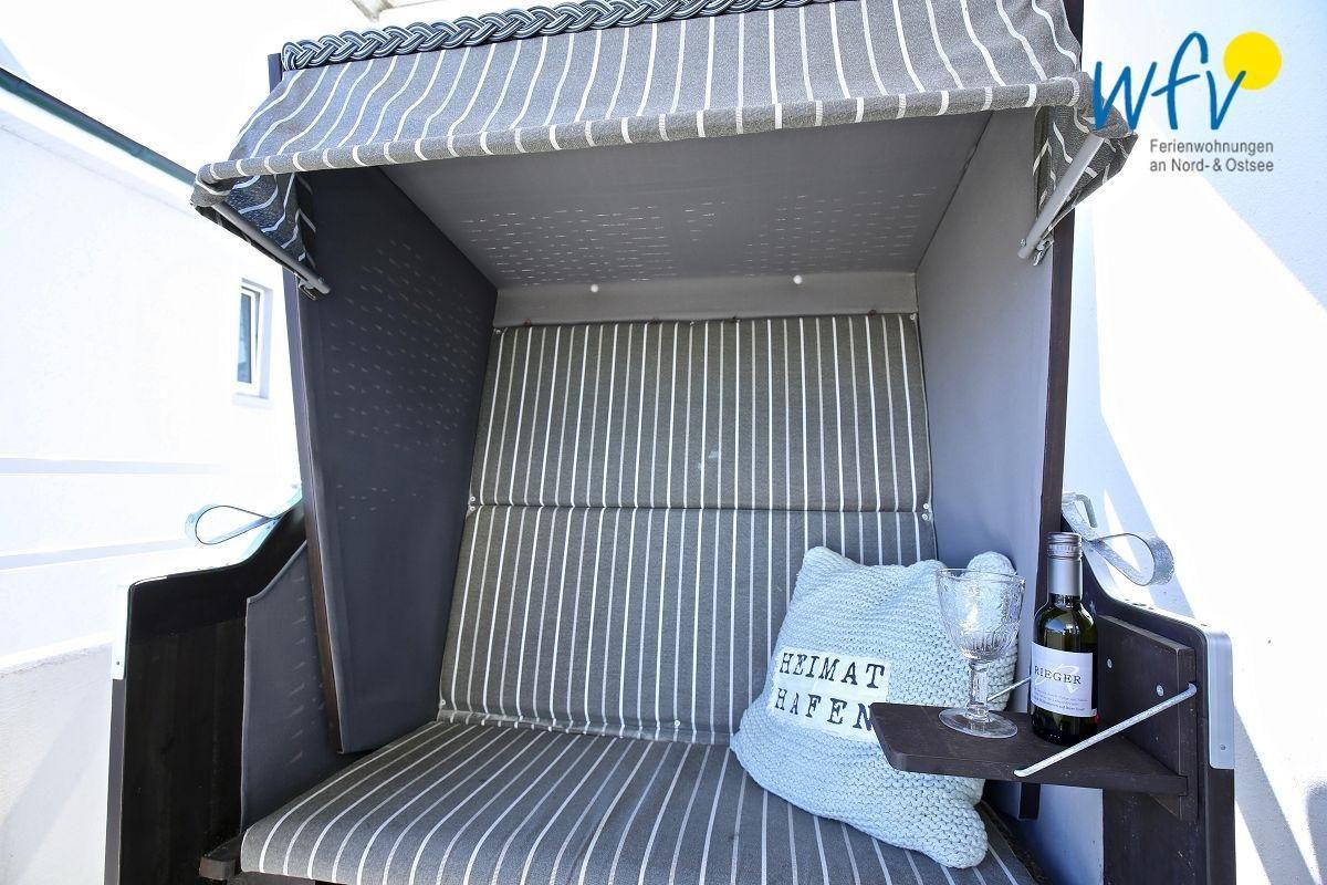 Highlight der Wangerooger Ferienwohnung ist der gemütlich möblierte und überdachte Balkon mit direktem Meerblick. Hier wartet bereits ein eigener Strandkorb auf Sie! Ganz in Ruhe ein gutes Buch zu lesen und dabei die frische Nordseeluft zu genießen ist pure Entspannung...