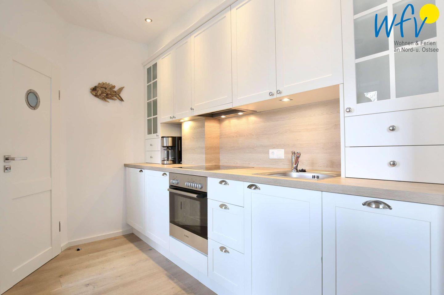 Genießen Sie eine bequeme und angenehme Selbstverpflegung! Die hochwertige Küche verfügt u.a. über einen Backofen, einen 4-Plattenherd, einen Kühlschrank und diverse Kleingeräte (Wasserkocher, Toaster etc.). Kaffeeliebhaber können zwischen einer klassischen Kaffeemaschine und einer Nespresso Maschine wählen.