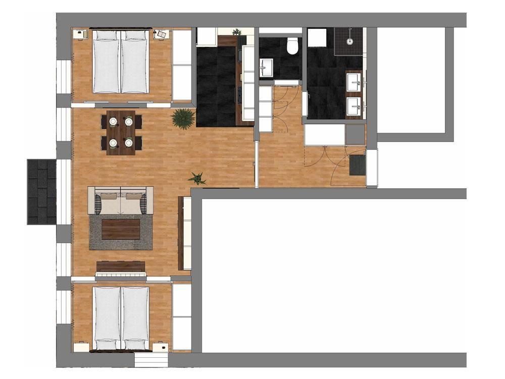 In der gesamten Unterkunft wurde eine Fußbodenheizung verlegt.