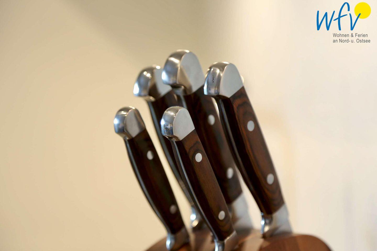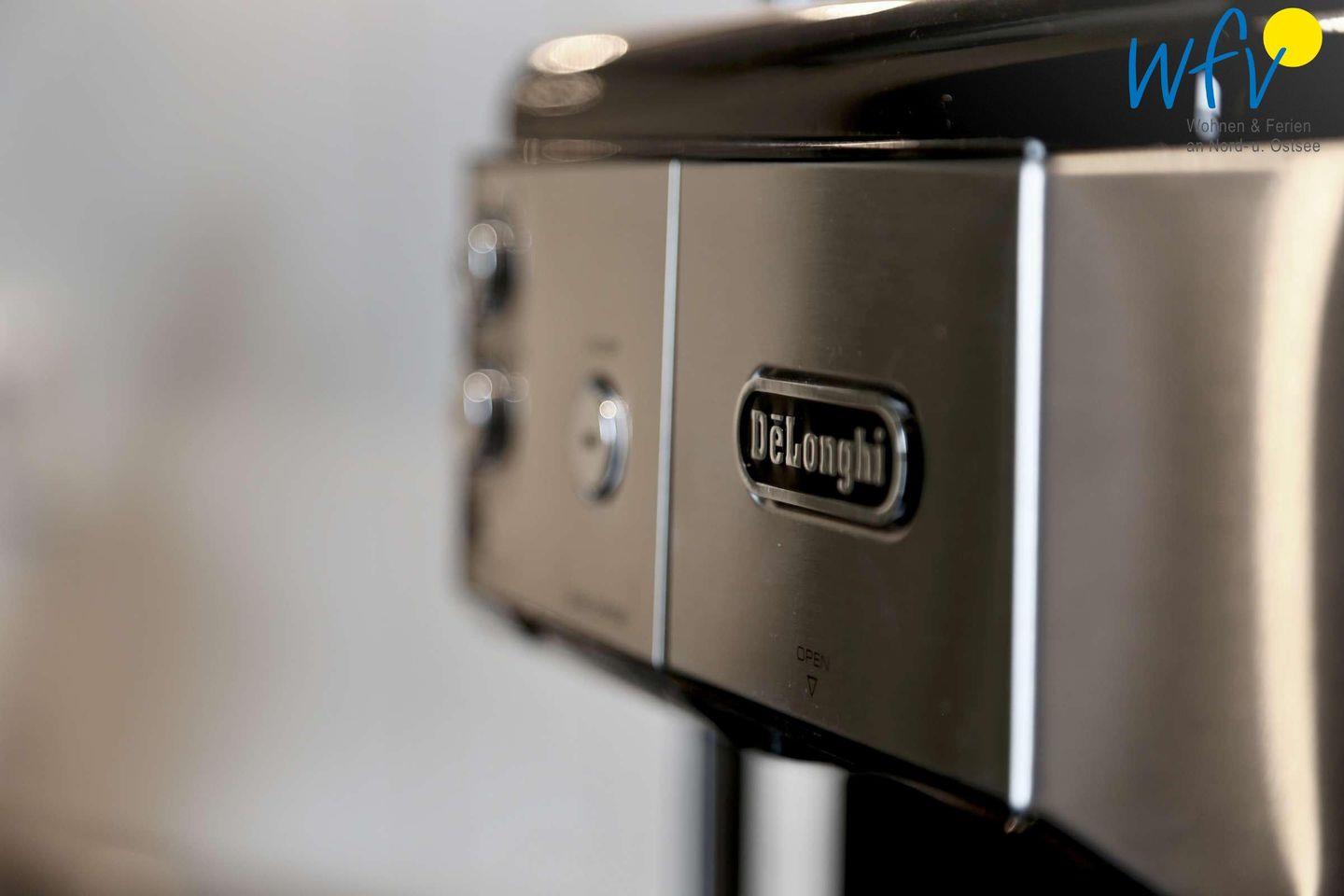 Für die bequeme Selbstverpflegung ist die moderne Einbauküche u.a. mit Herd, Backofen, Kühlschrank und Geschirrspüler, edlem Geschirr, Gläsern und Karaffen sowie Kaffee-/Espressomaschine, Entsafter, Milchaufschäumer, Wasserkocher, Mixer und Toaster ausgestattet. Zudem befindet sich hier ein großer Esstisch für gemeinsame Mahlzeiten.