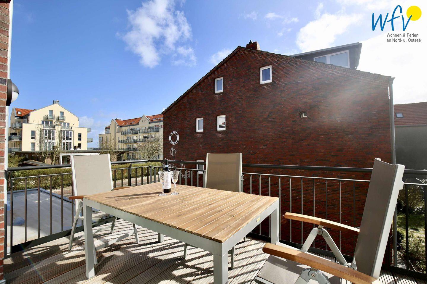 Herrlich relaxen können Sie vor allem auf dem sonnigen Balkon! Frische Nordseeluft, gemütliche Balkonmöbel und ein Elektrogrill laden zu unvergesslichen Urlaubsmomenten ein.