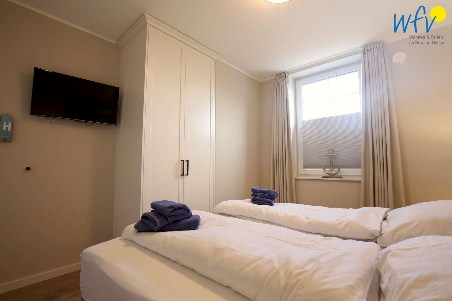 Die zwei separaten Schlafzimmer sind jeweils mit einem Doppelbett (180 x 200 cm) und einem TV ausgestattet.